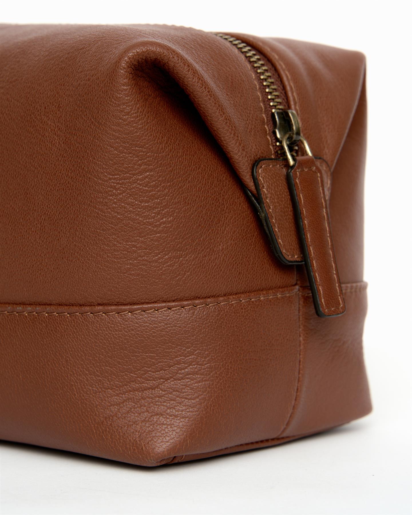 AGABB02 Leather Milo Wash Bag CHESTNUT