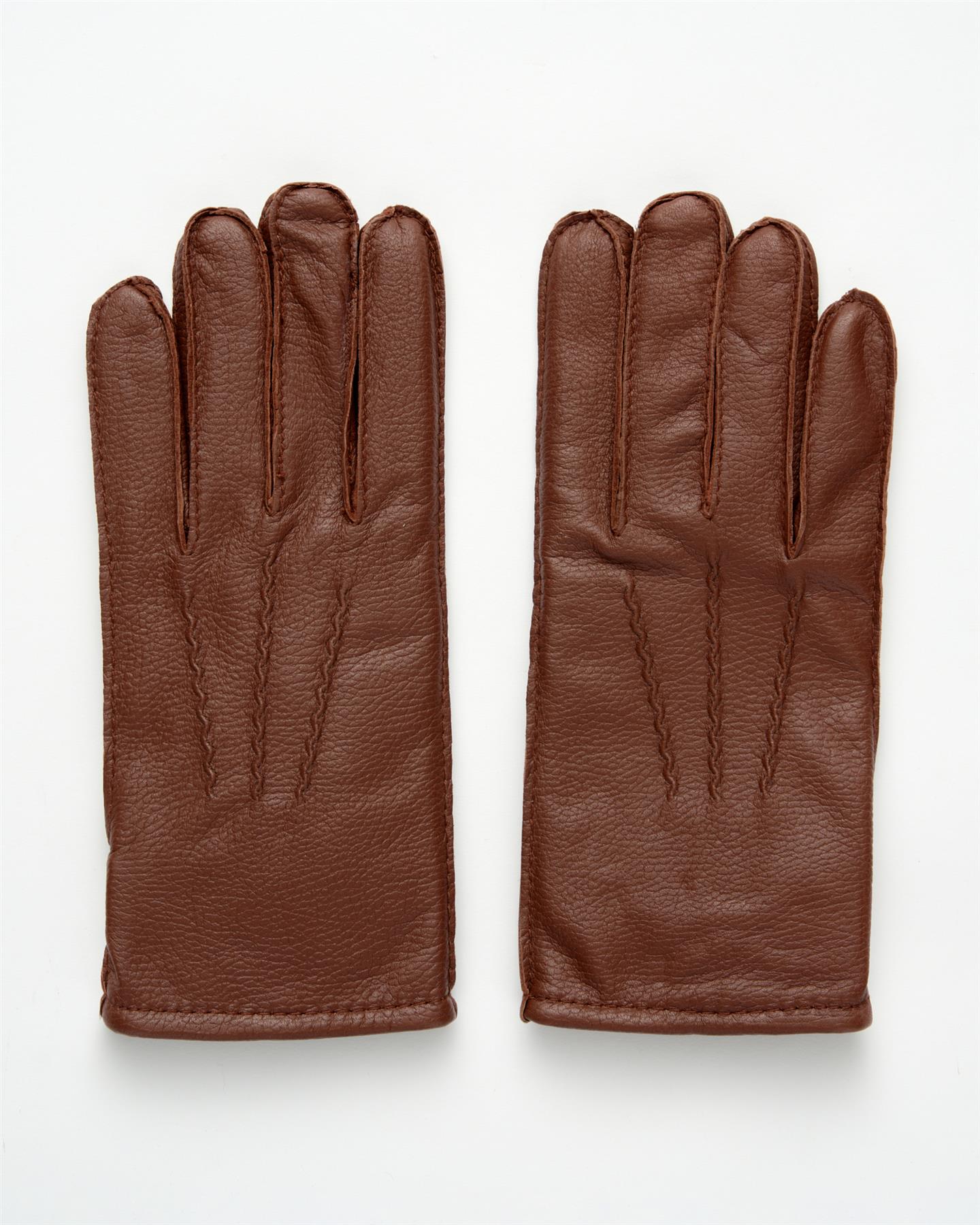 Leather gloves with clean top-stitch detailing for a neat, smart look. A simple style that works with any coat.