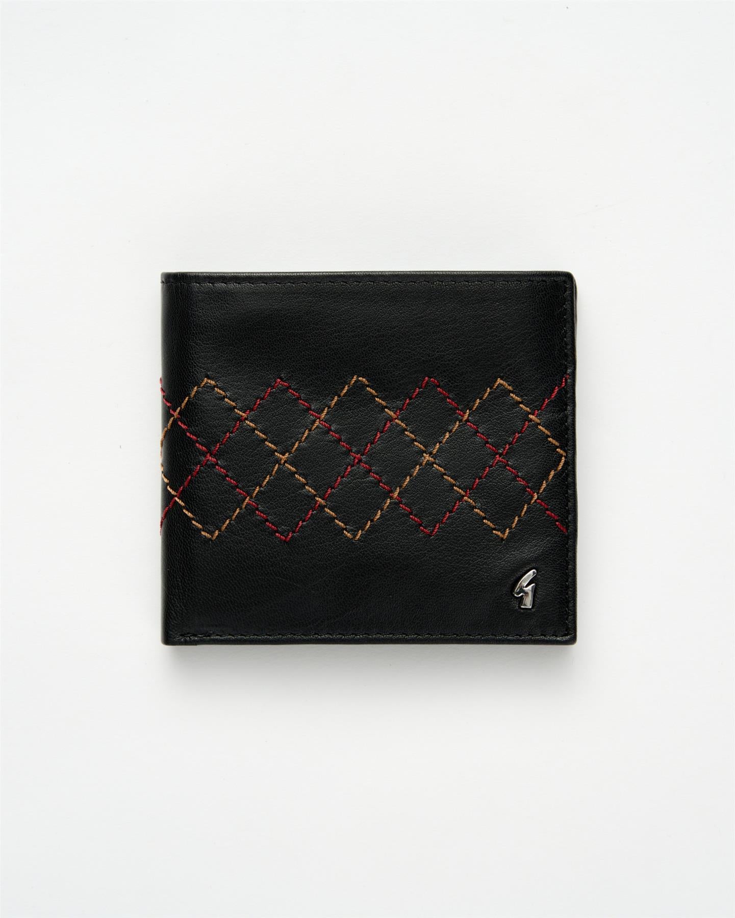 AGABW23 Cross Stitch Coin Pocket Wallet BLACK