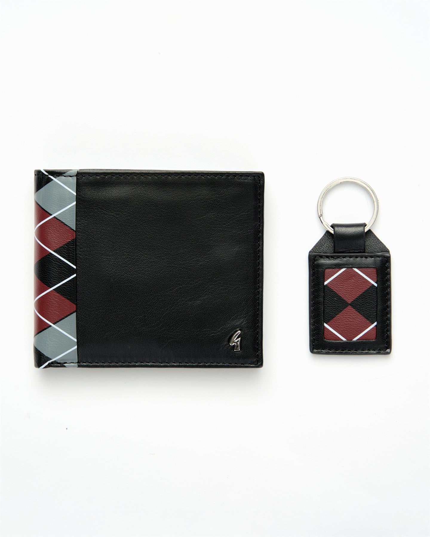 A smart leather wallet and keyring set with a classic Argyle look. Clean, stylish, and made from 100% leather for a premium feel.