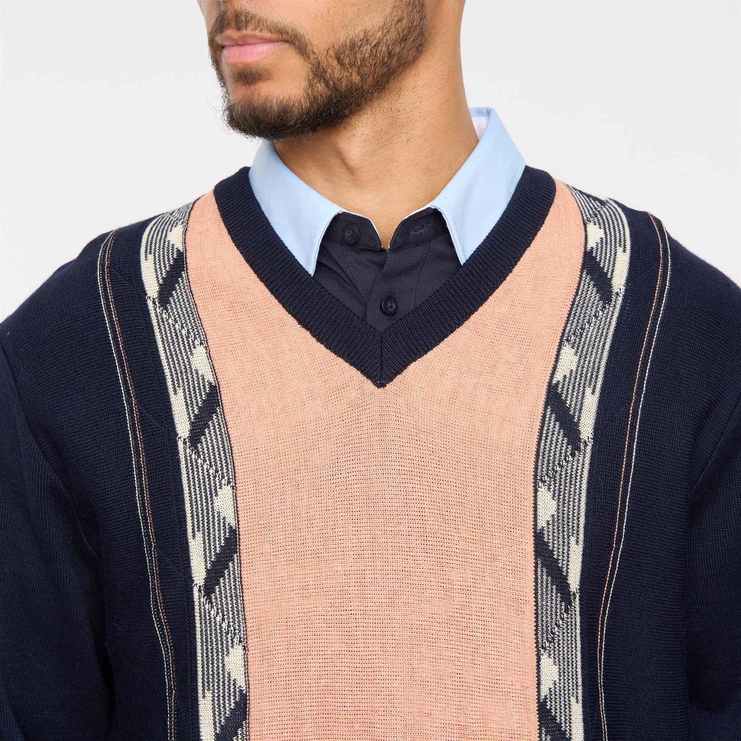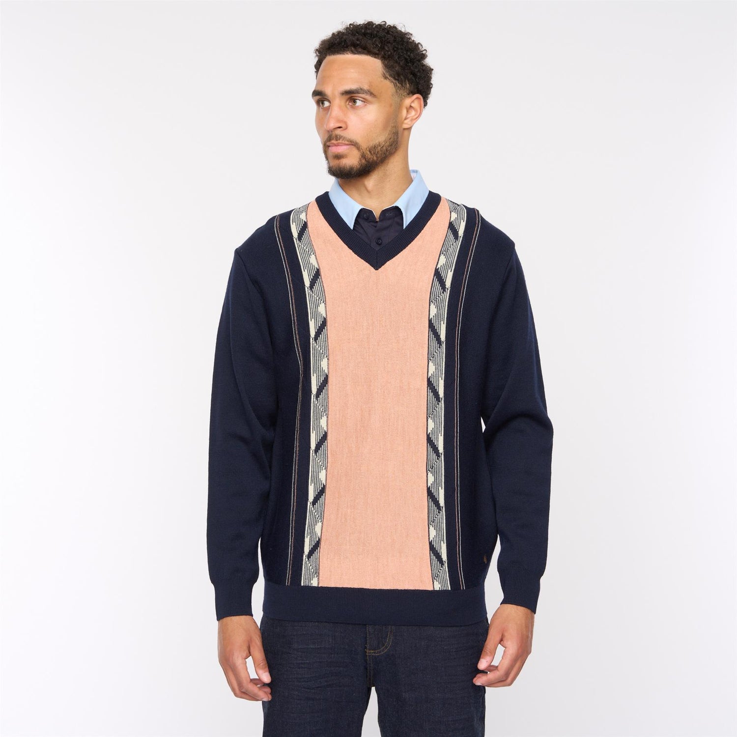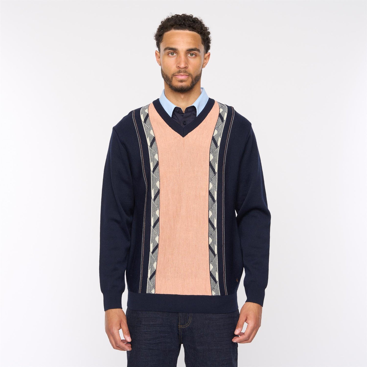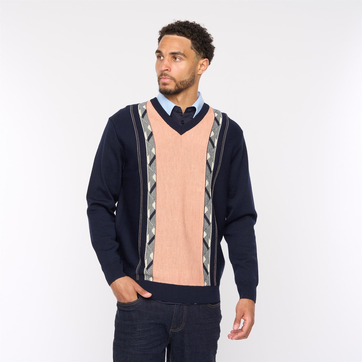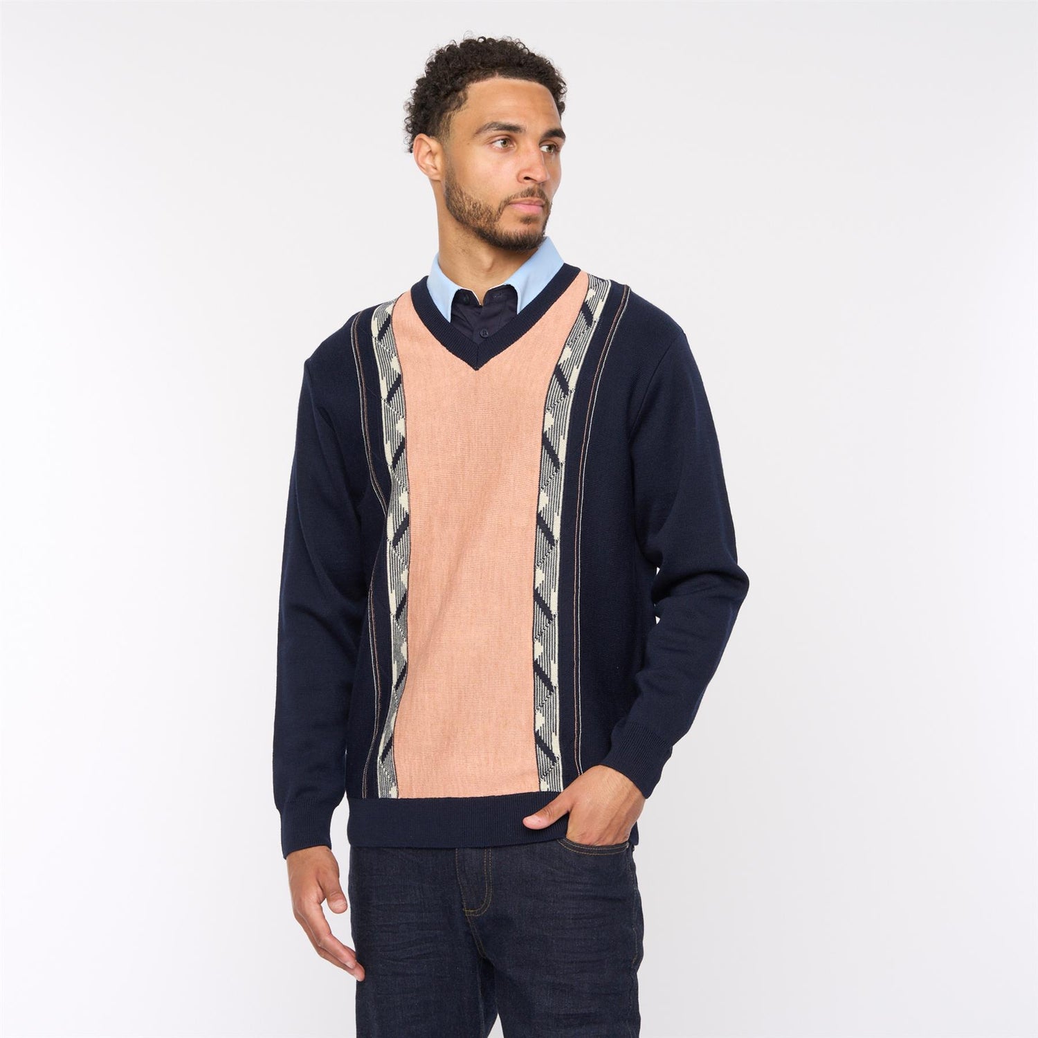 G54M02 Mens Plain Vee Kneck Pattern Front Knit Gabicci Classic - NAVY
