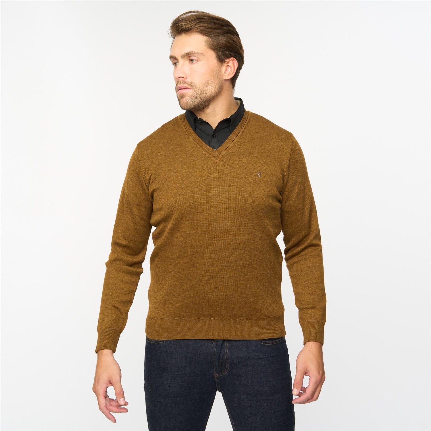 Introducing Mens Plain Vee Neck Sweater Gabicci Classic Nutmeg
