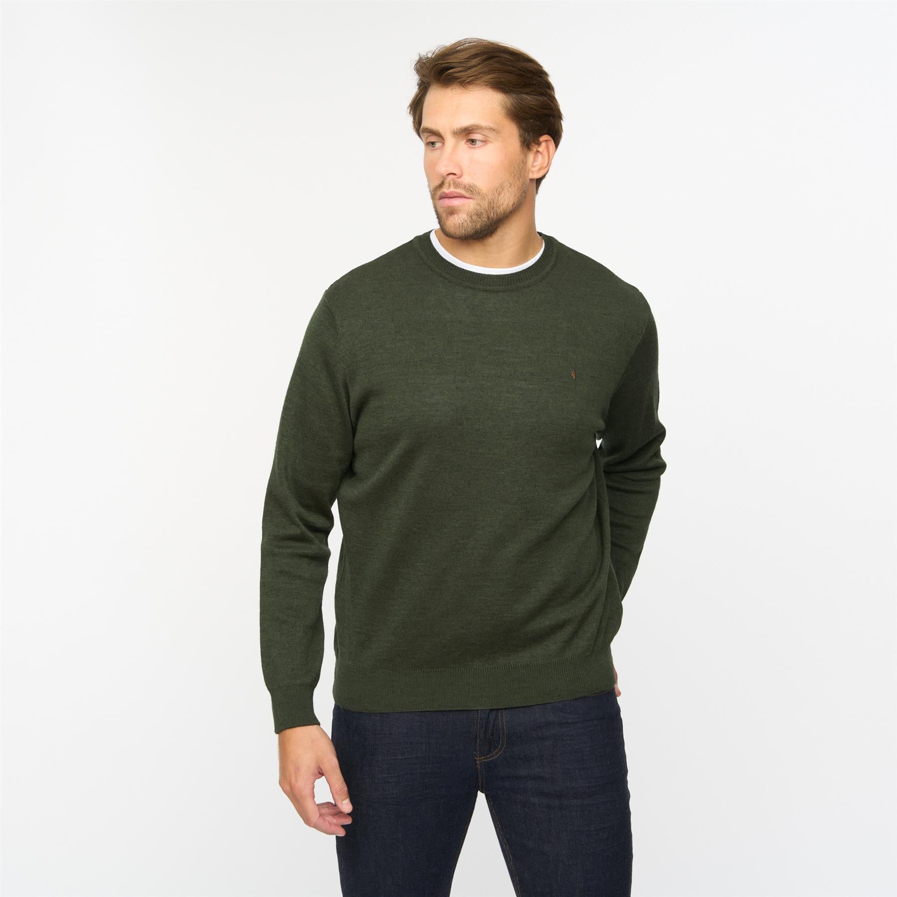Highlighting Mens Plain Crew Neck Sweater Gabicci Classic Ivy
