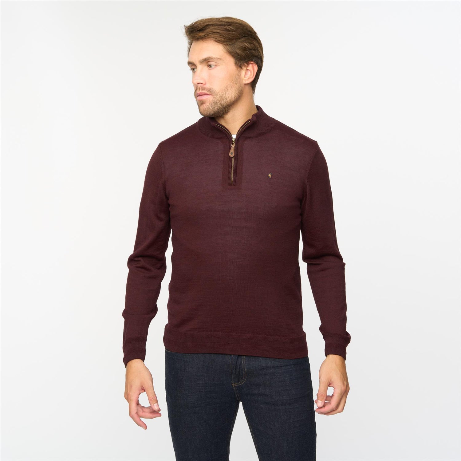 Presenting Mens Merino Quarter Zip Sweater Gabicci Classic Mulberry