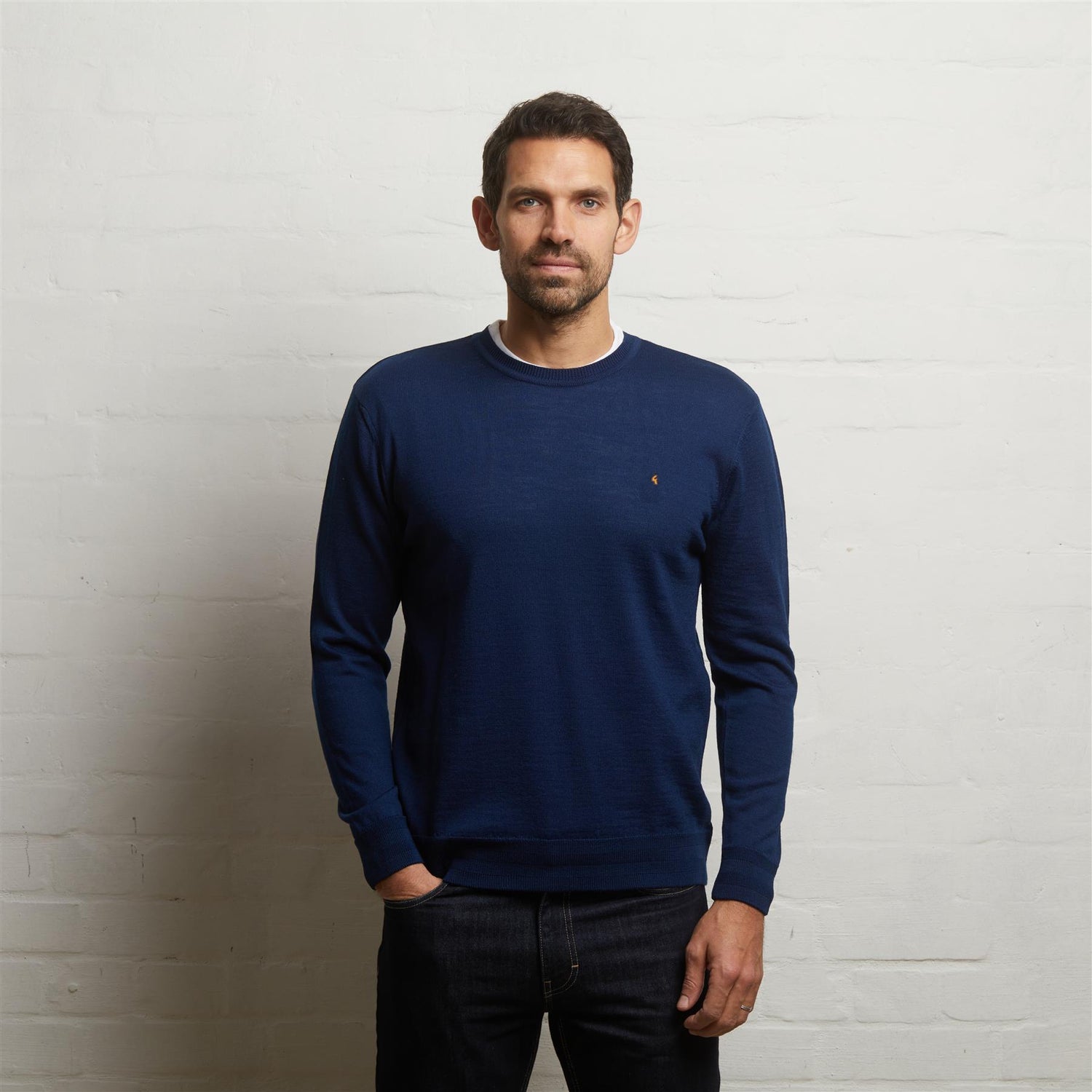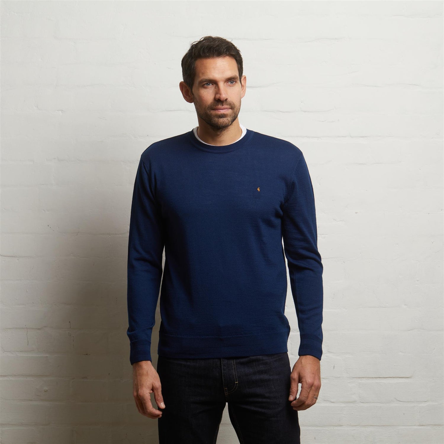 Presenting Mens Merino Crew Neck Sweater Gabicci Classic Navy