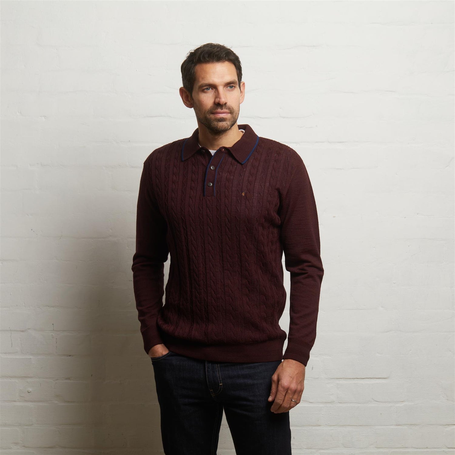 Presenting Mens Merino Polo Neck Sweater Gabicci Classic Mulberry