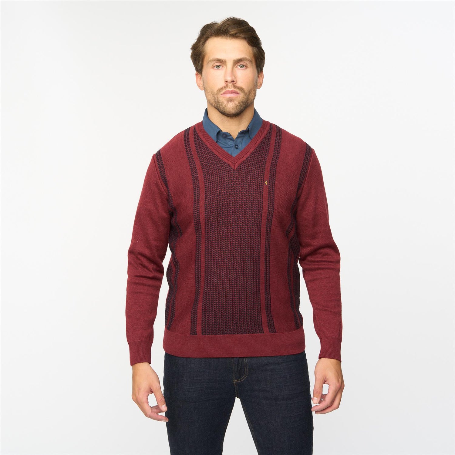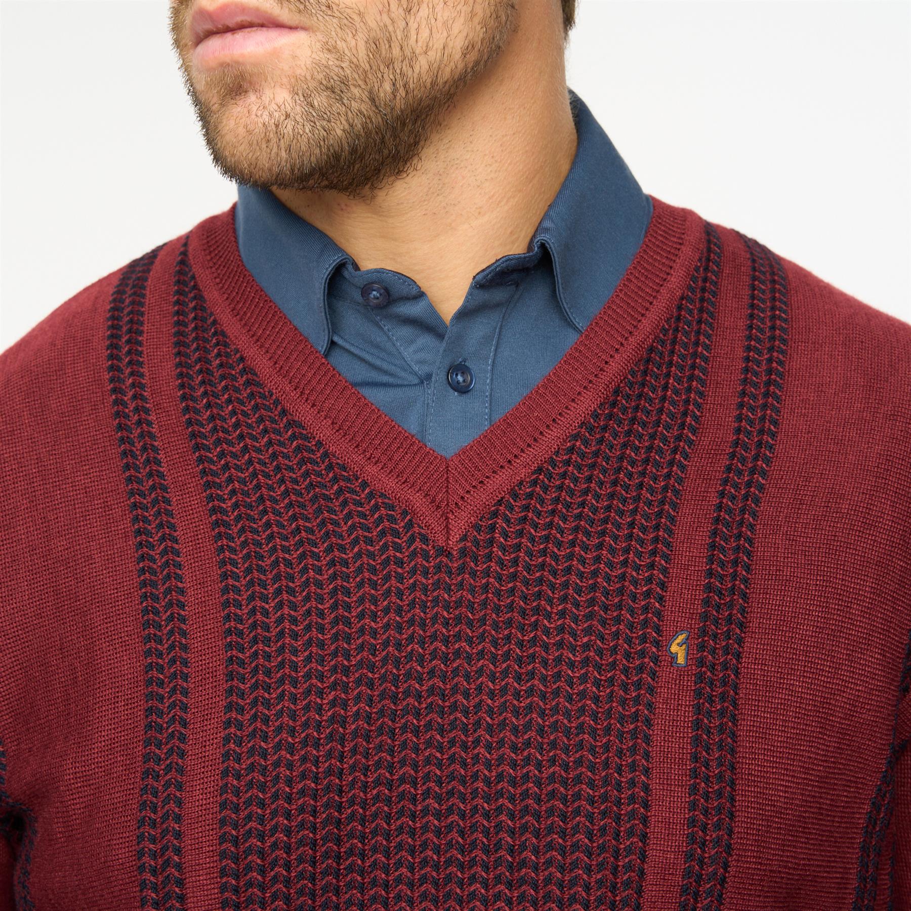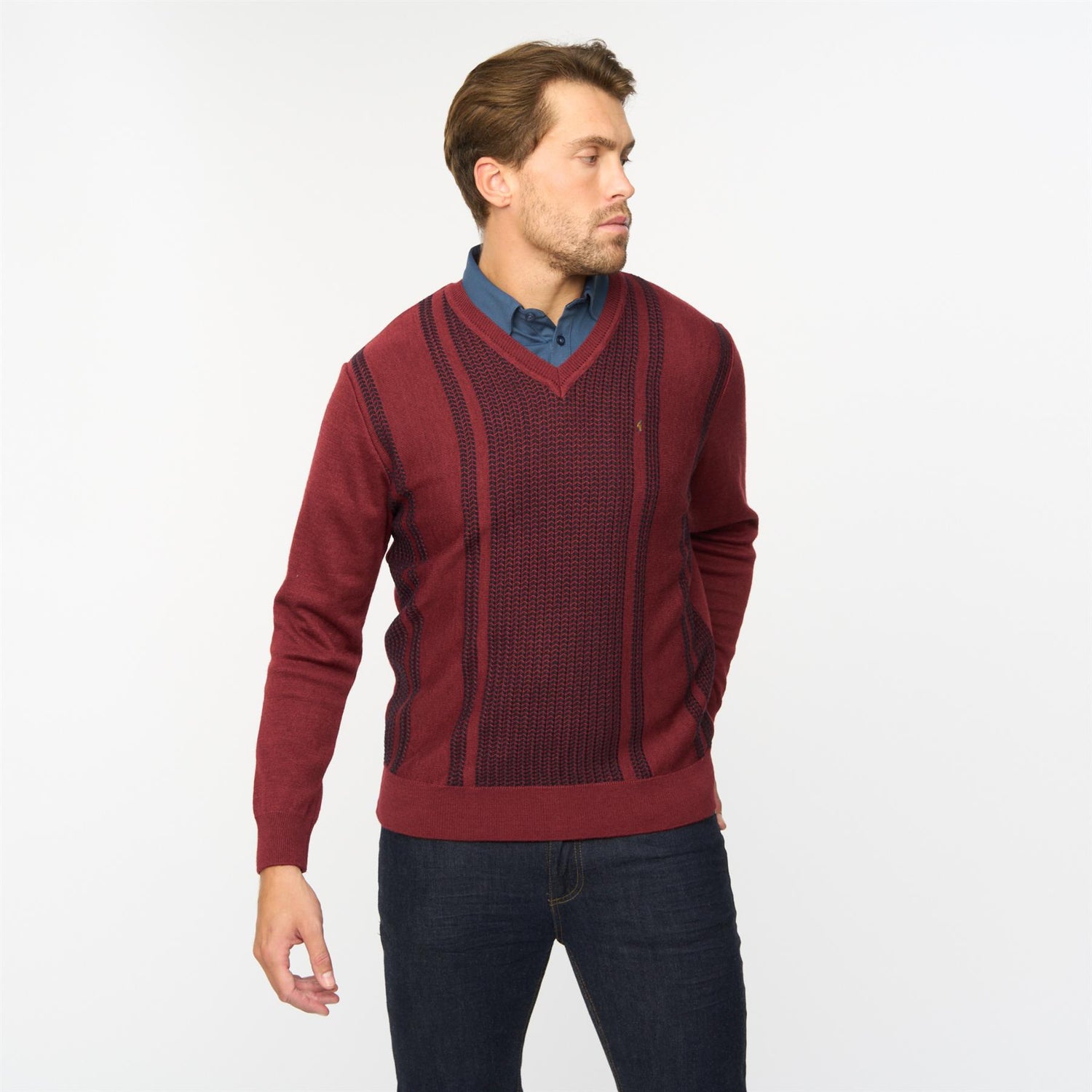 Introducing Mens Fancy Vee Neck Sweater Gabicci Classic Mulberry