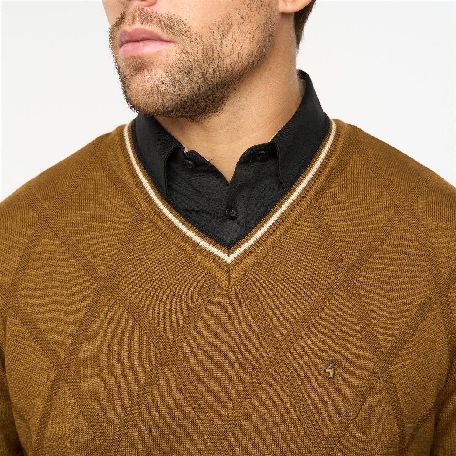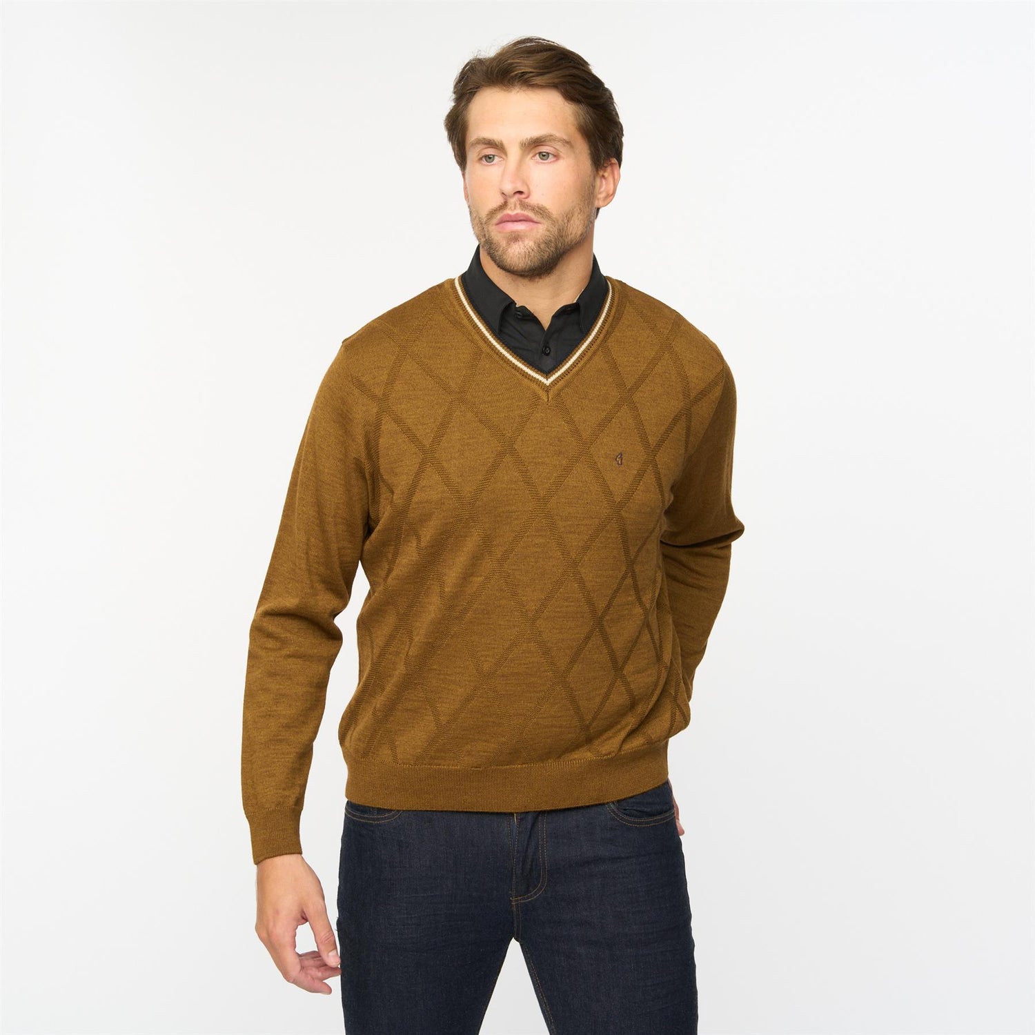 Presenting Mens Fancy Vee Neck Sweater Gabicci Classic Nutmeg