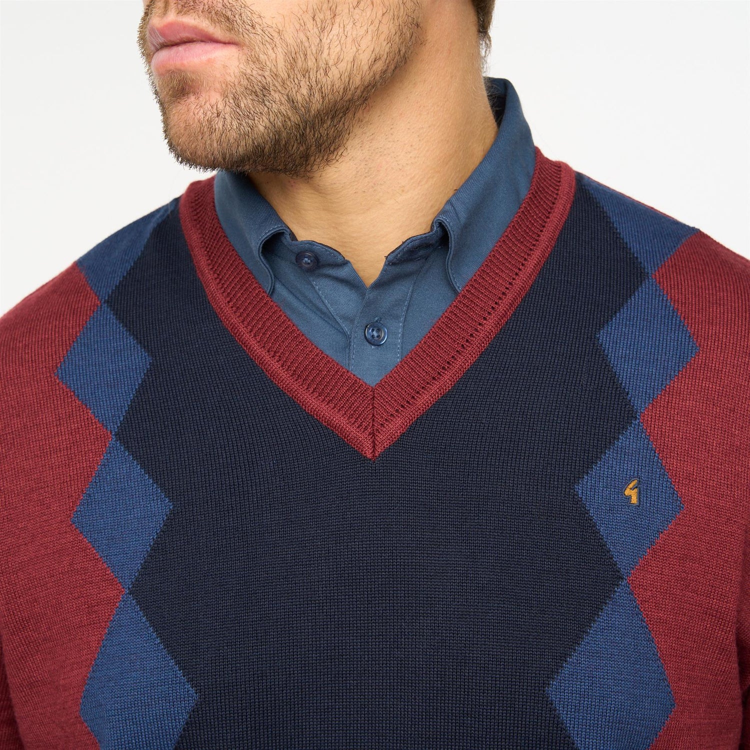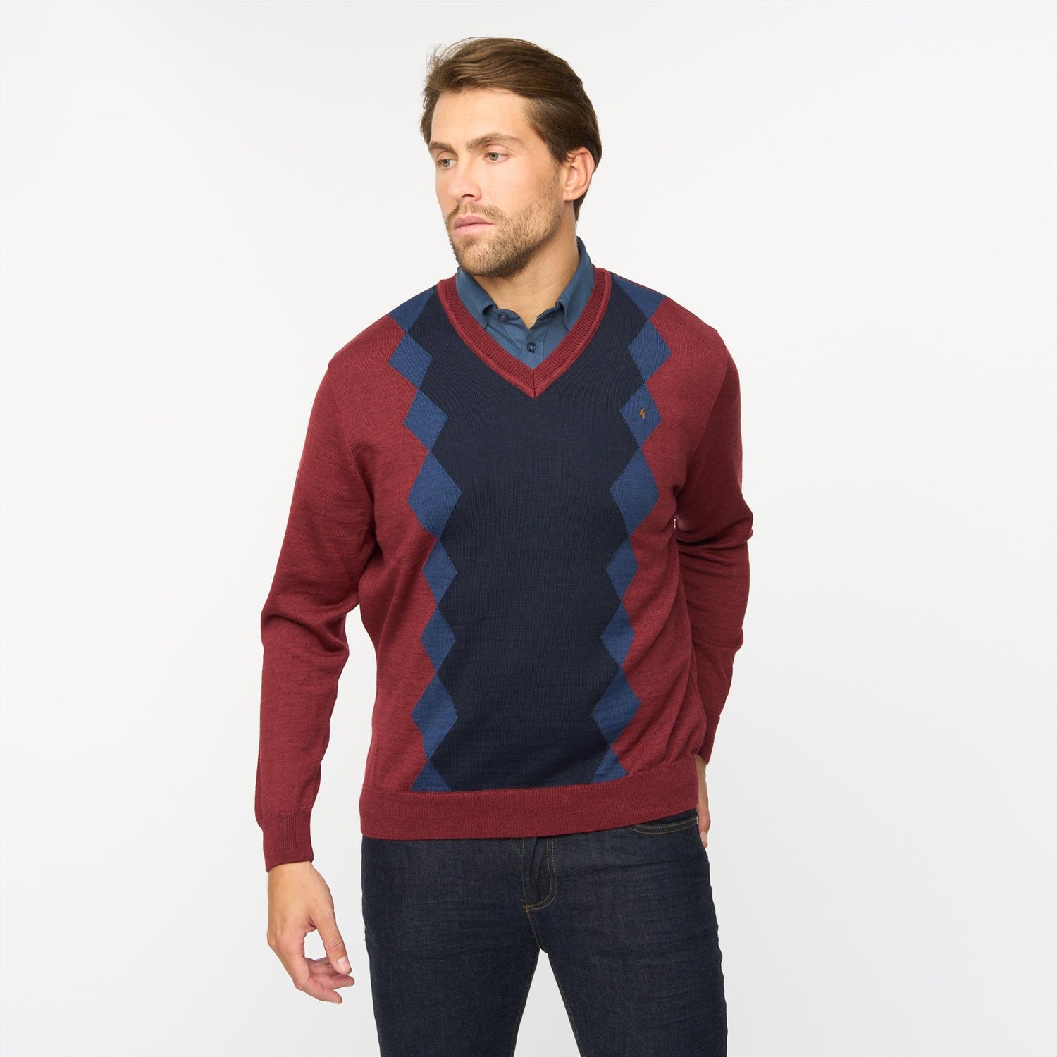 Presenting Mens Fancy Vee Neck Sweater Gabicci Classic Mulberry