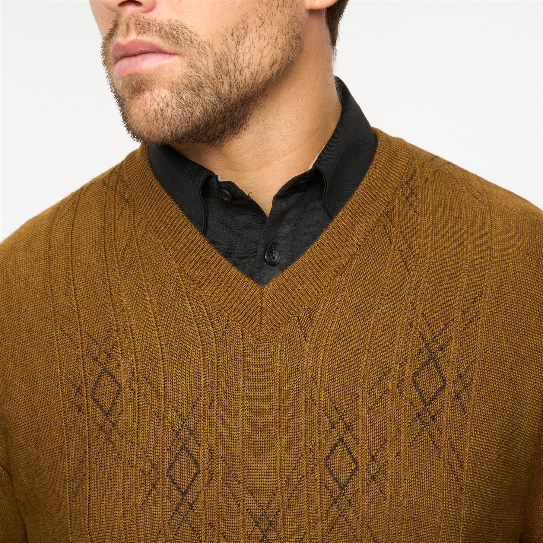 Presenting Mens Fancy Vee Neck Sweater Gabicci Classic Nutmeg