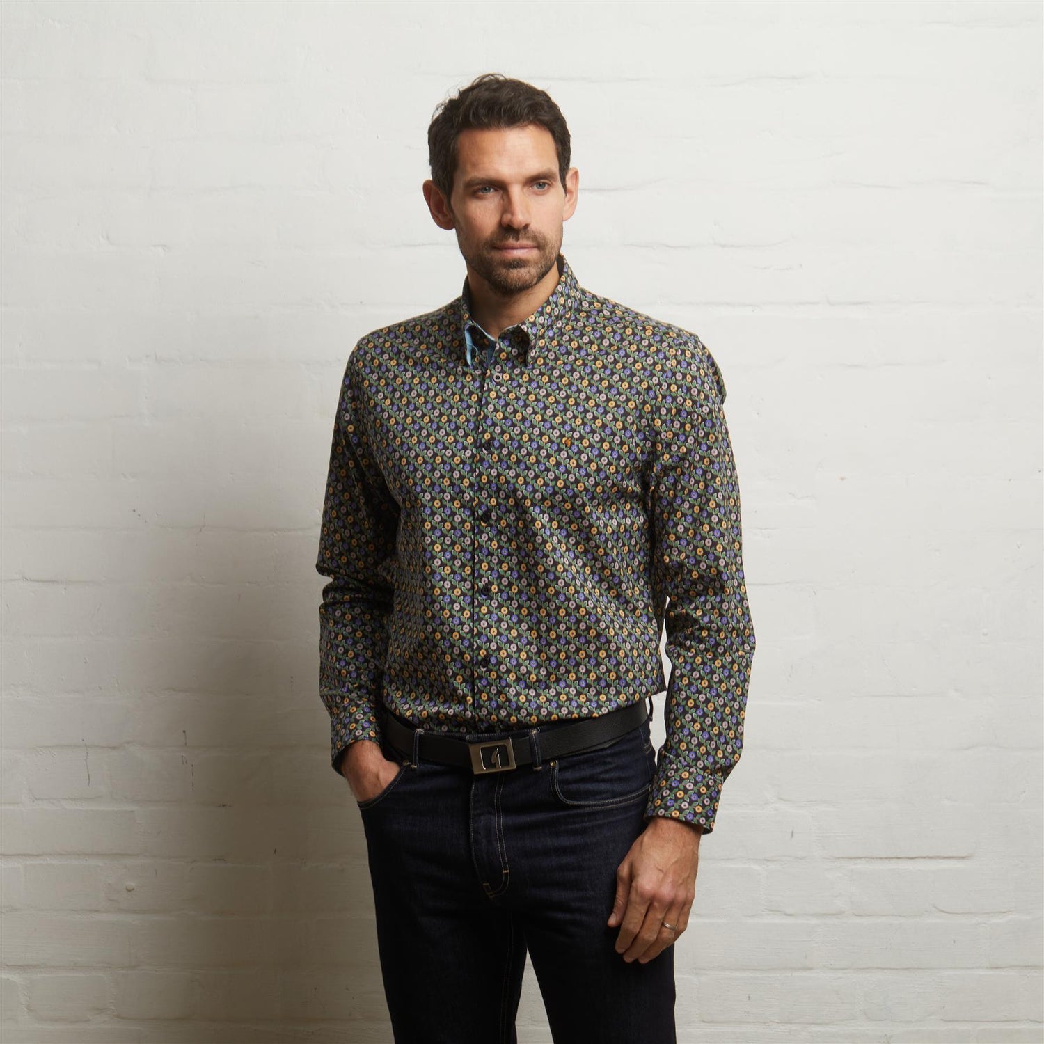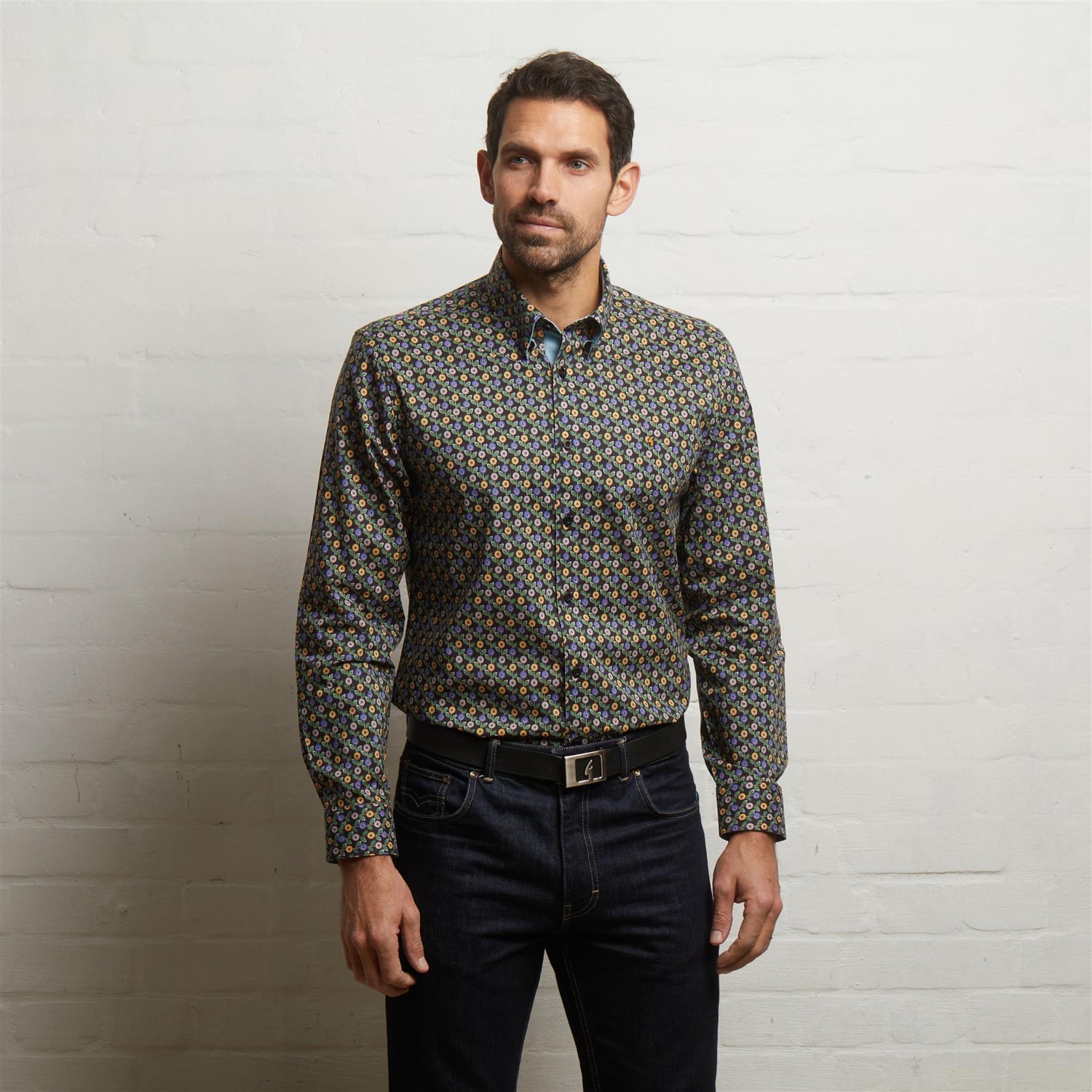 Presenting Mens Long Sleeve Printed Woven Shirt Gabicci Classic Black
