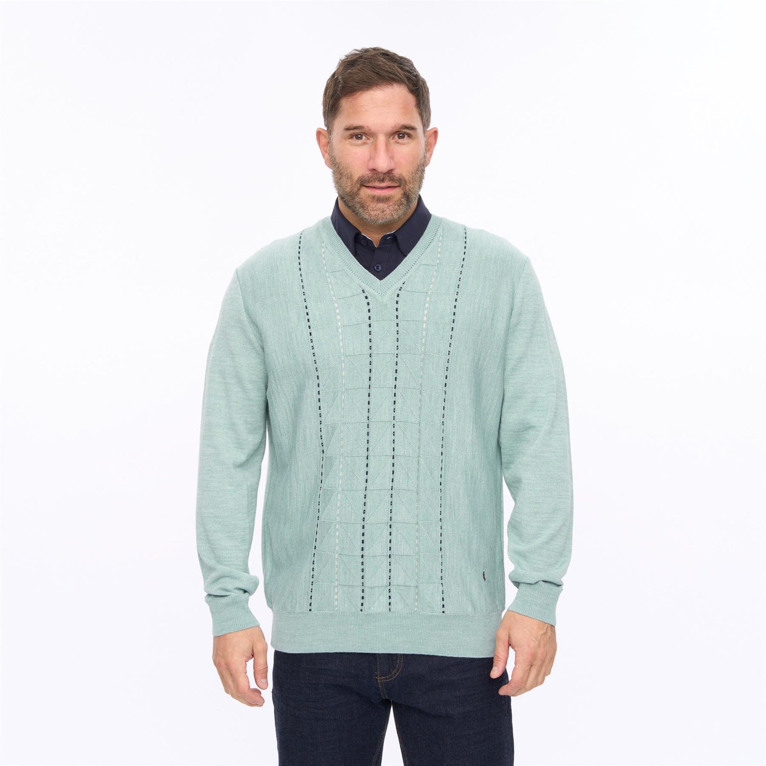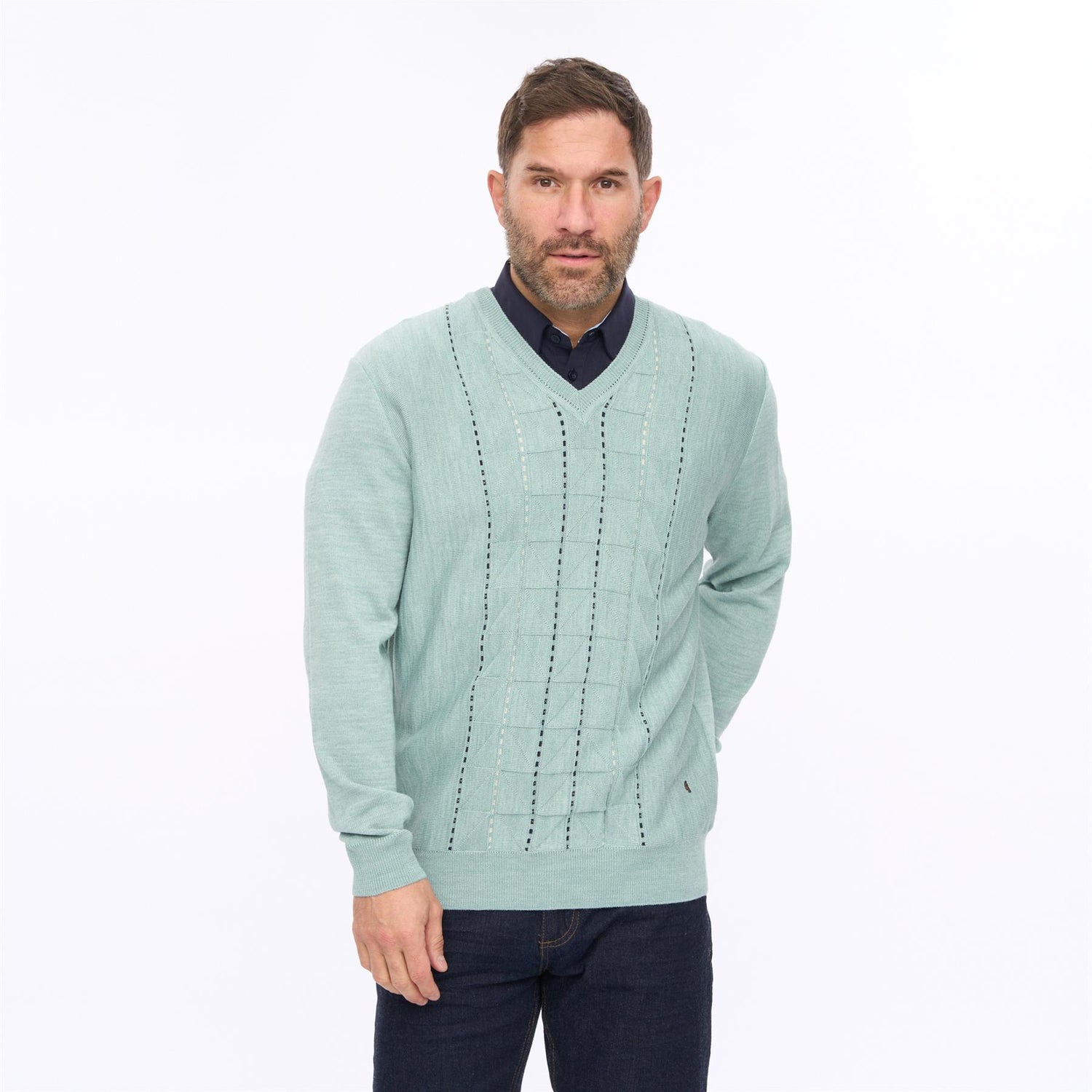 G56M02 Mens Pattern Front Knit V-Neck Gabicci Classic - MINT
