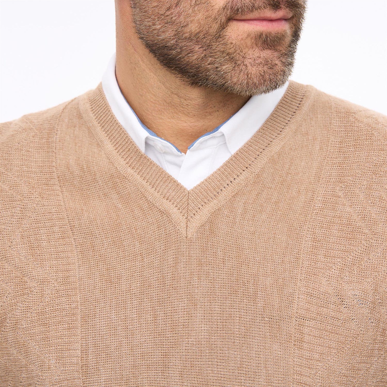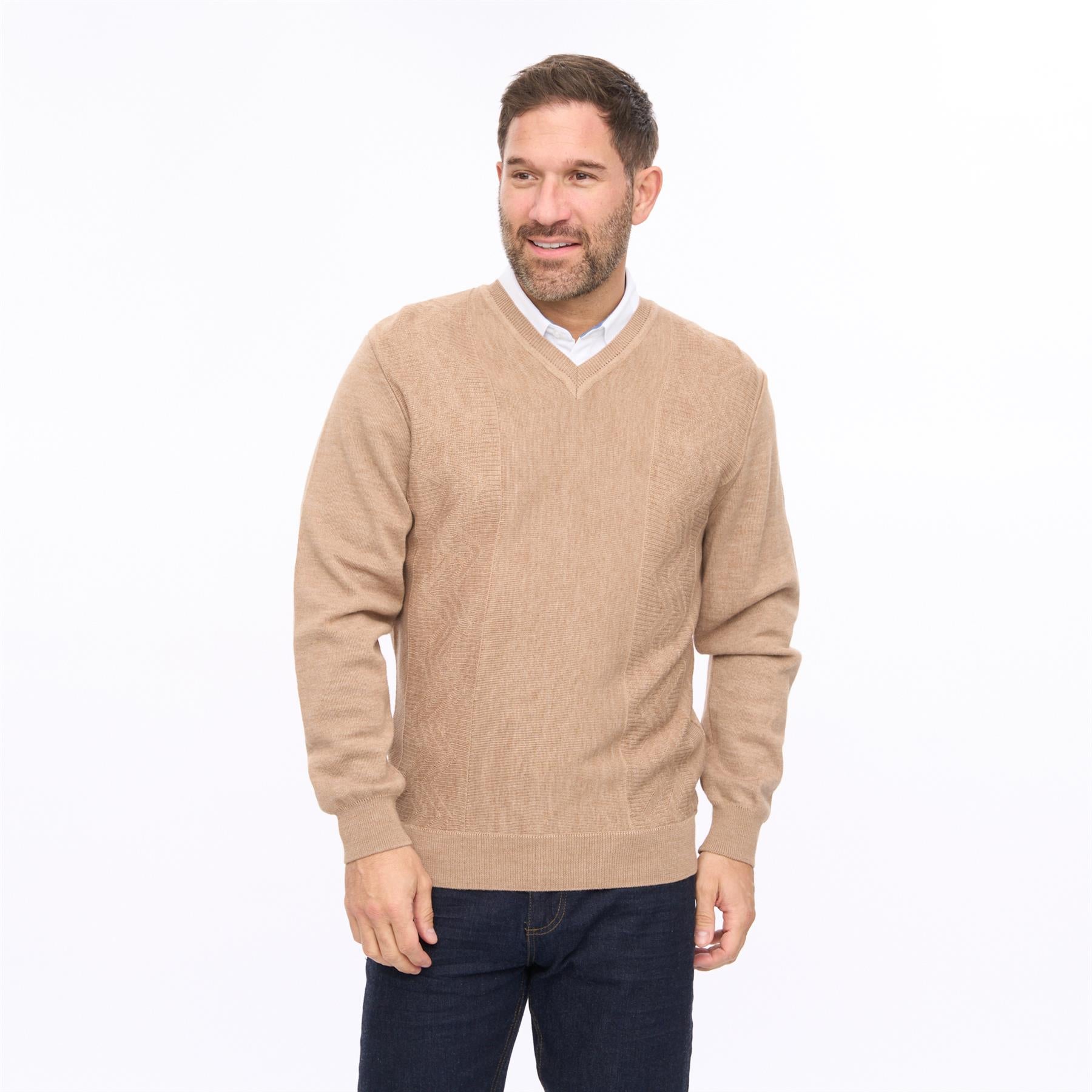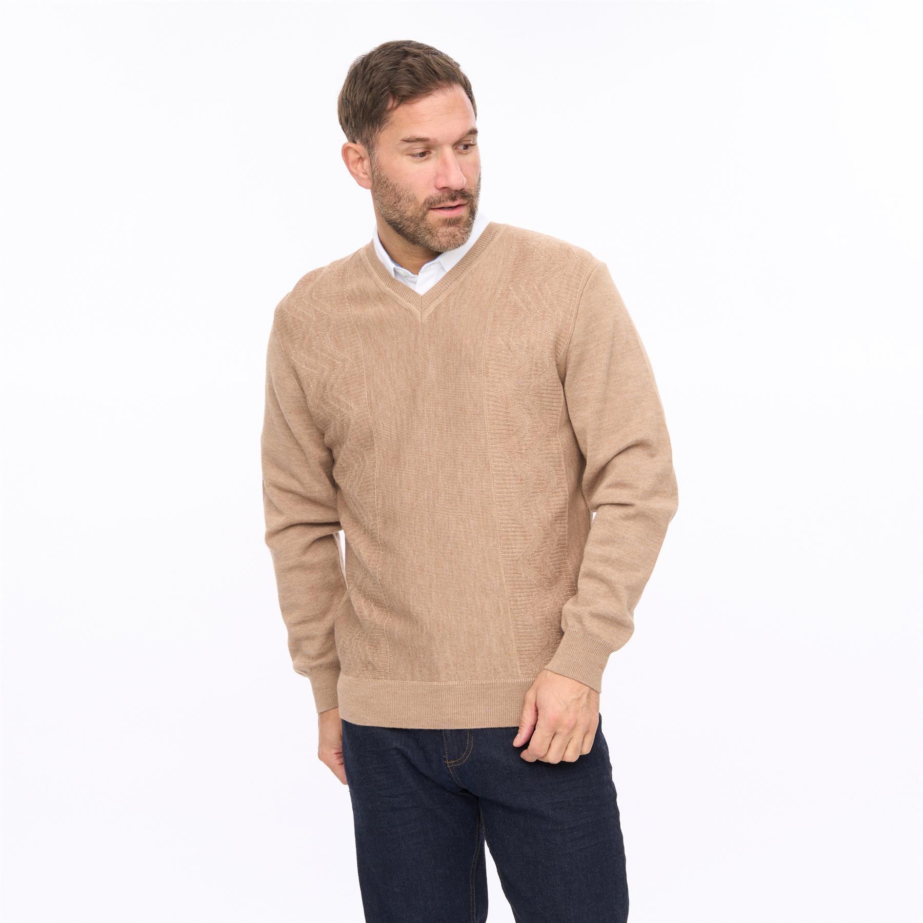 G56M03 Mens Pattern Front Knit V-Neck Gabicci Classic - SANDSTONE