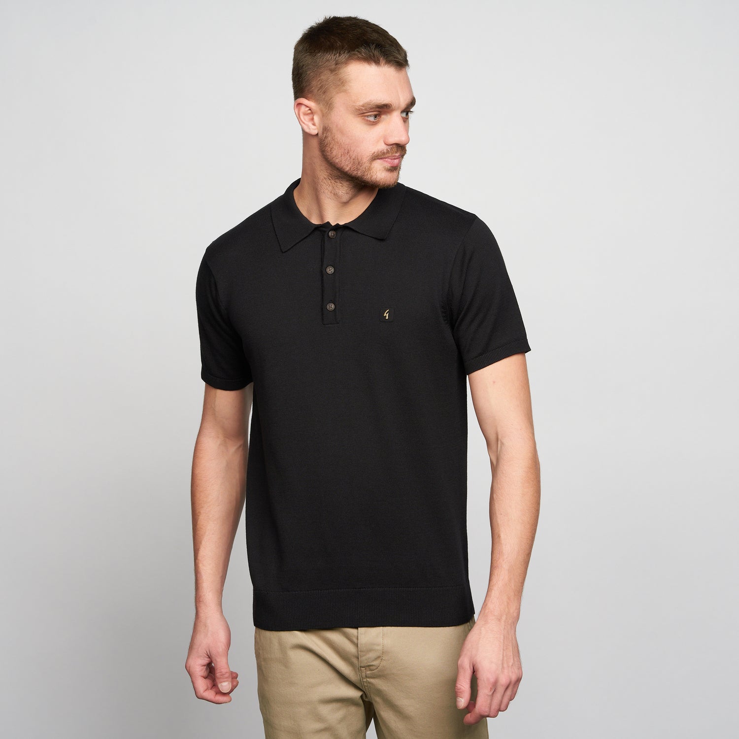 V00GK04 Mens Jackson Three Button Knitted Polo Gabicci Vintage - BLACK