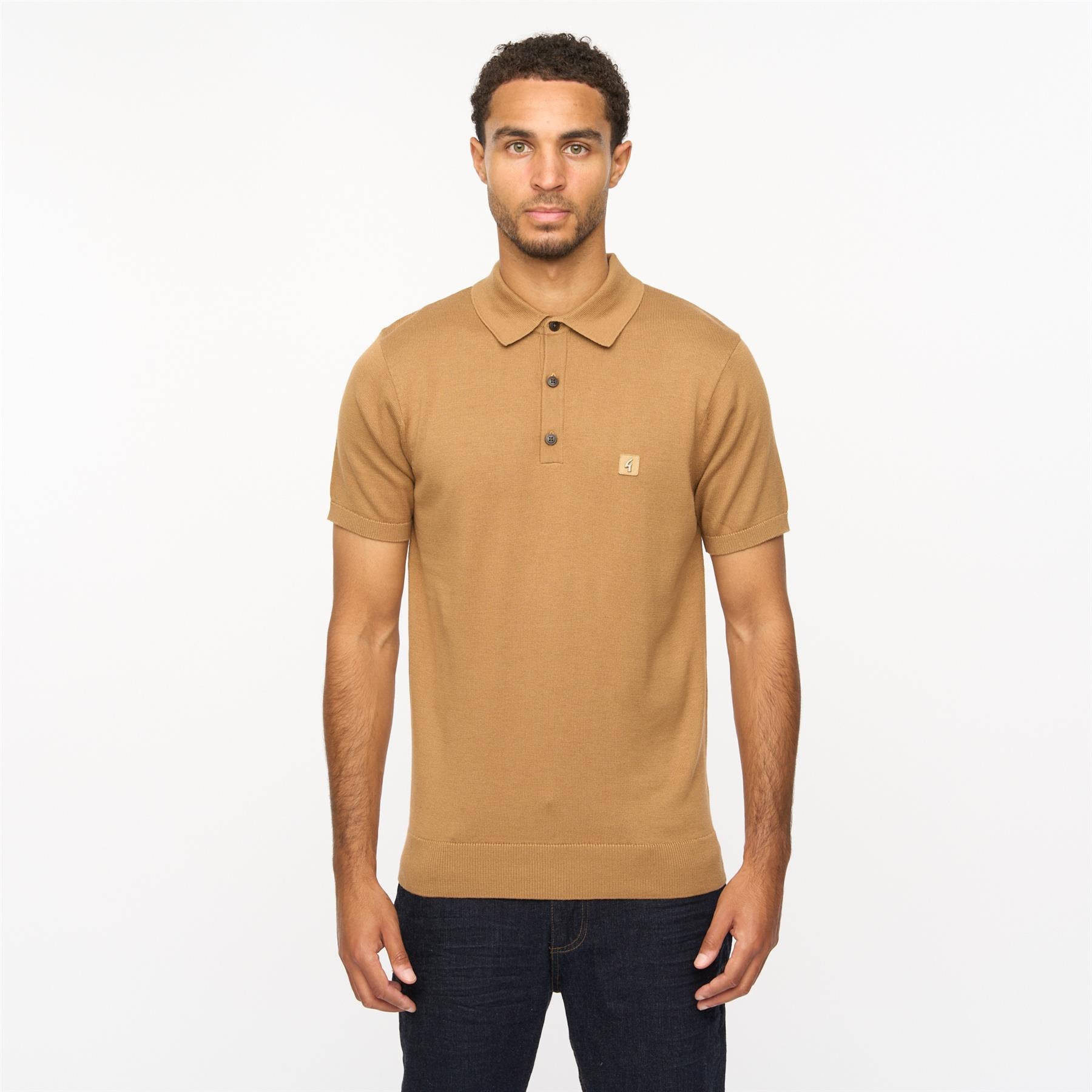Introducing Mens Jackson Short Sleeve Plain Knitted Three Button Polo Gabicci Vintage Nutmeg