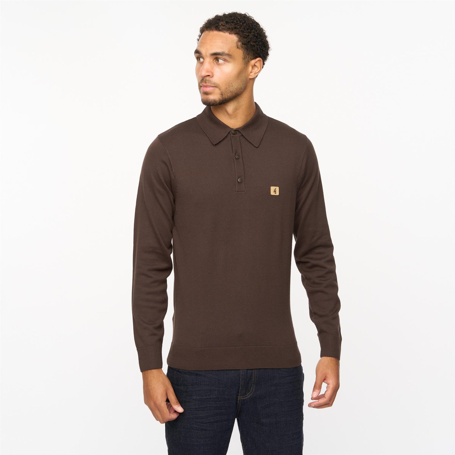 Presenting Mens Francesco Long Sleeve Plain Knitted Three Button Polo Gabicci Vintage Clove