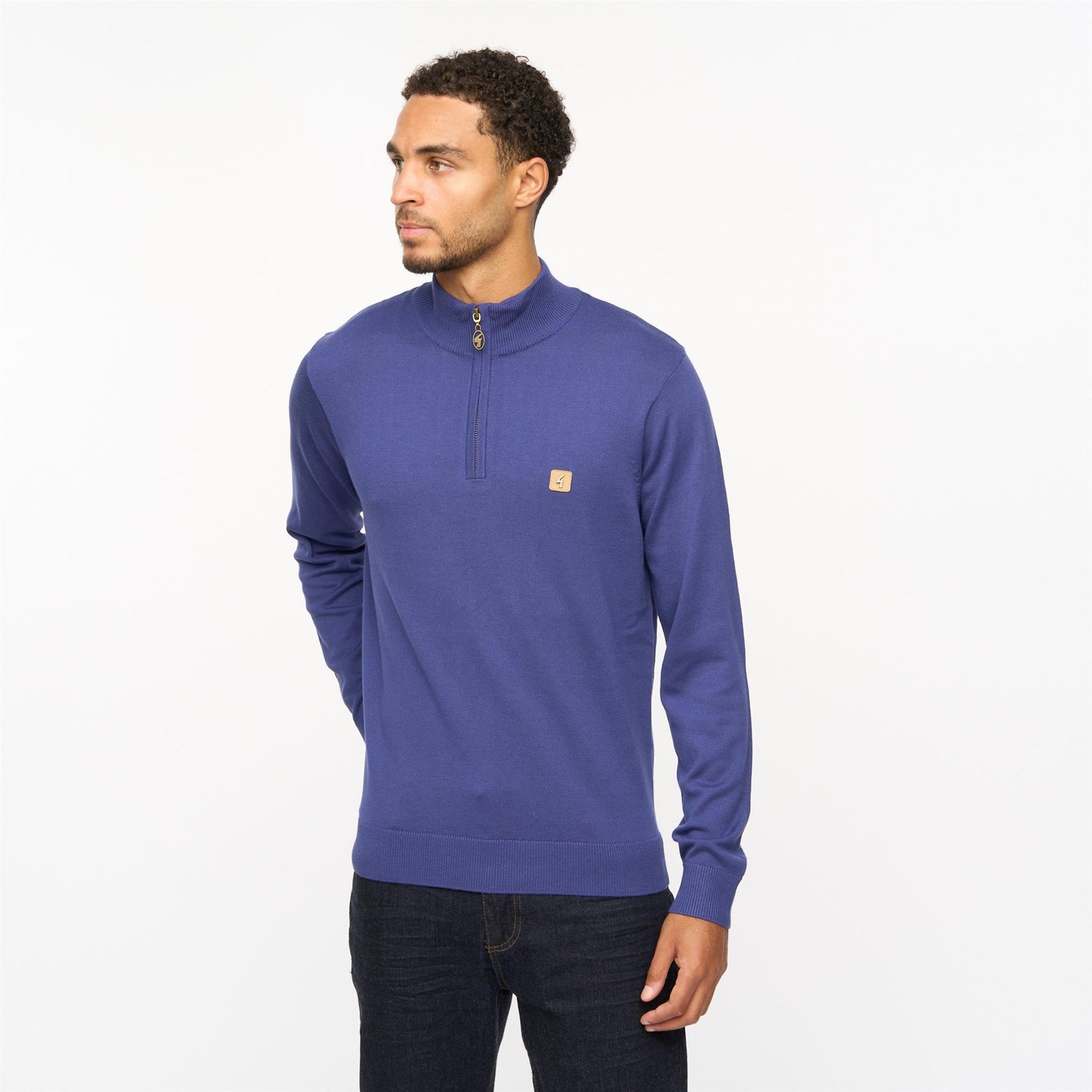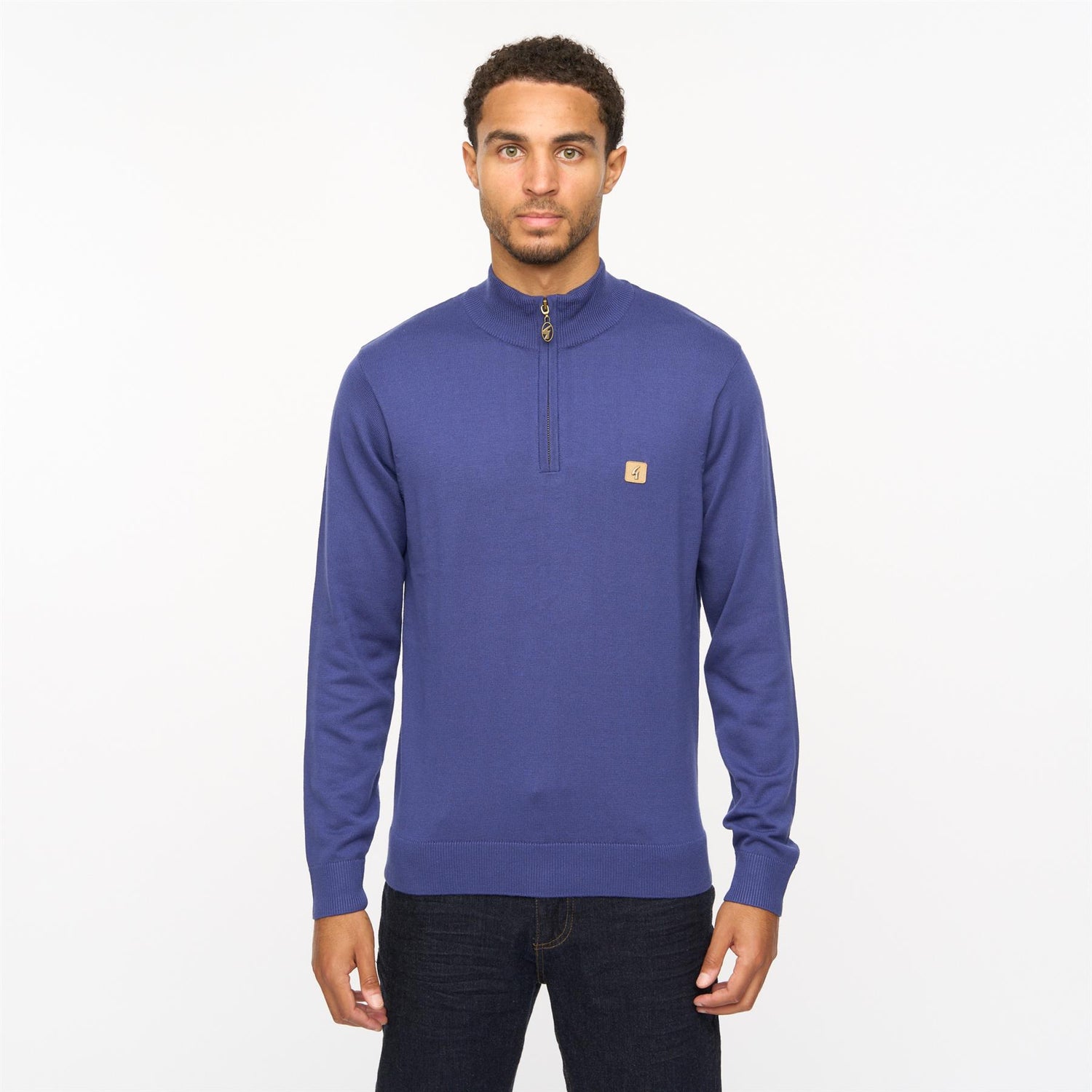 Presenting Mens Naxton Long Sleeve Plain Knitted Quarter Zip Gabicci Vintage Atlantic