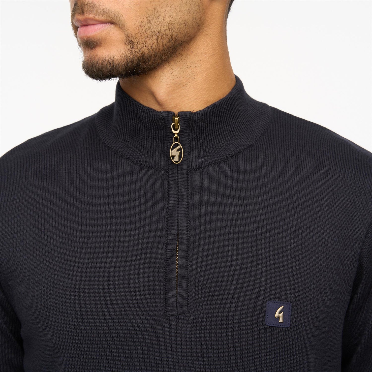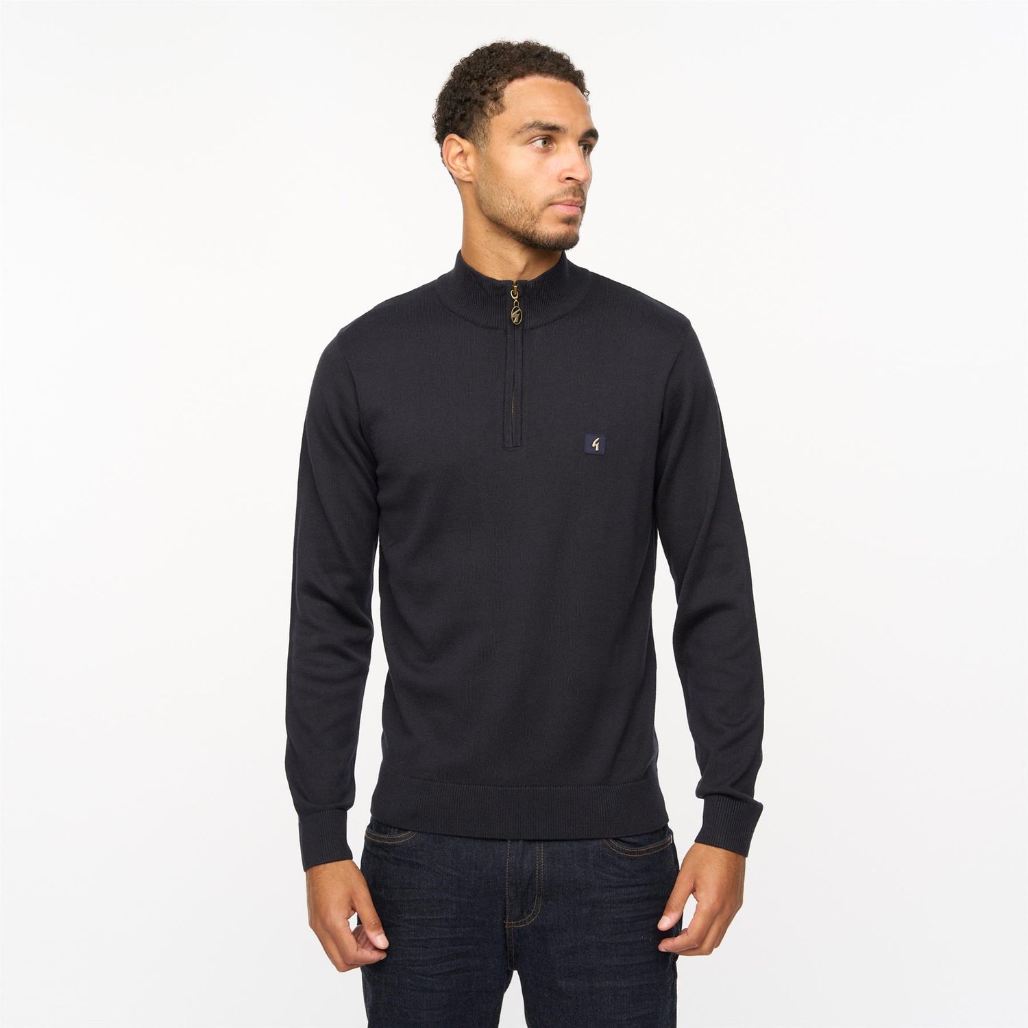 Mens Naxton Long Sleeve Plain Knitted Quarter Zip Gabicci Vintage Navy