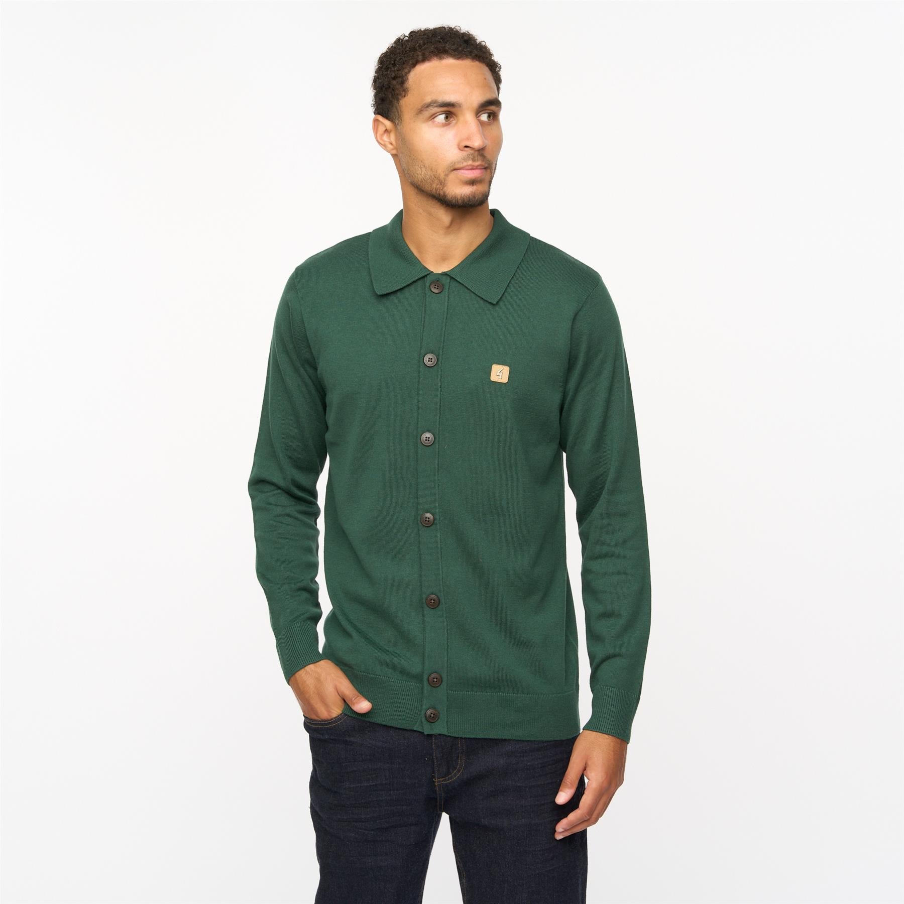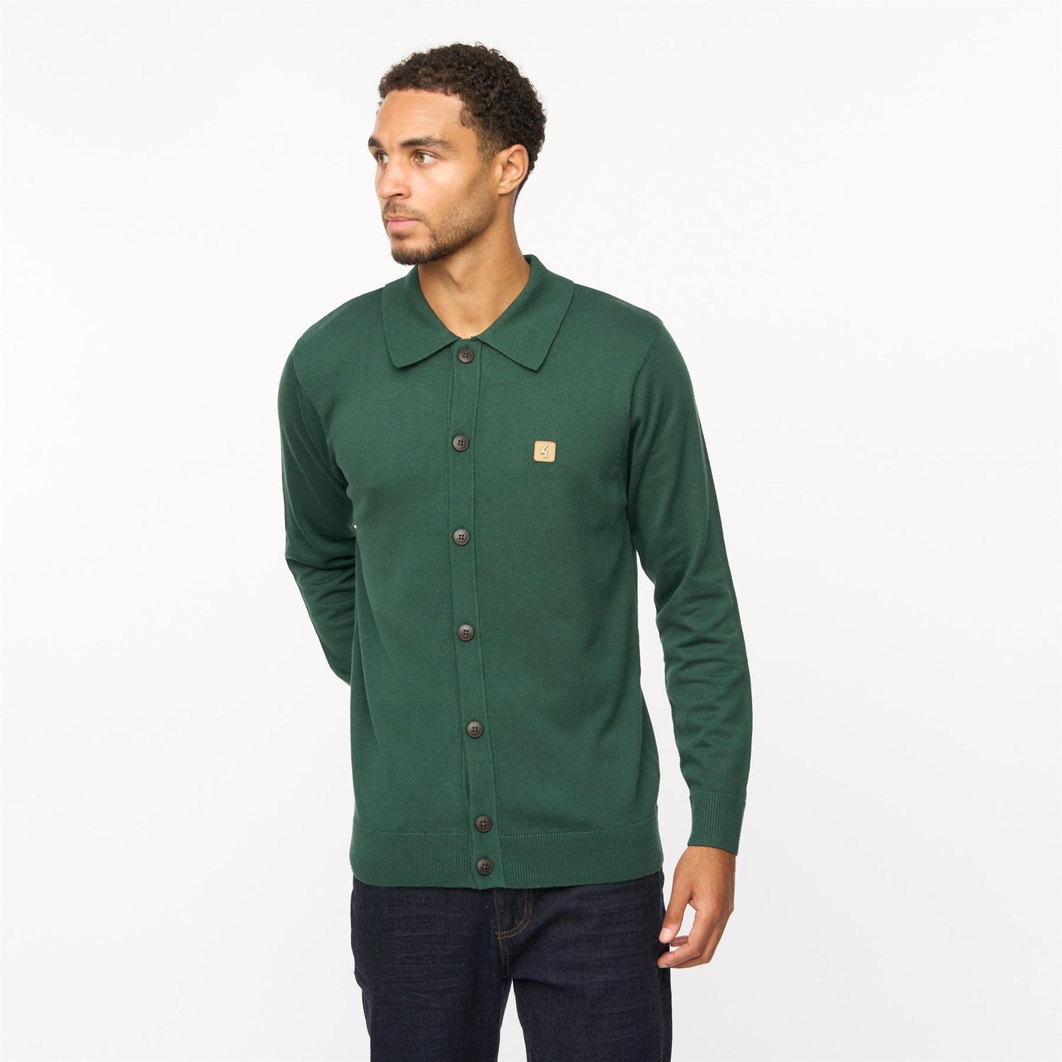 V55GK16 Mens Azima Long Sleeve Plain Knitted Button-Thru Polo Gabicci Vintage - IVY