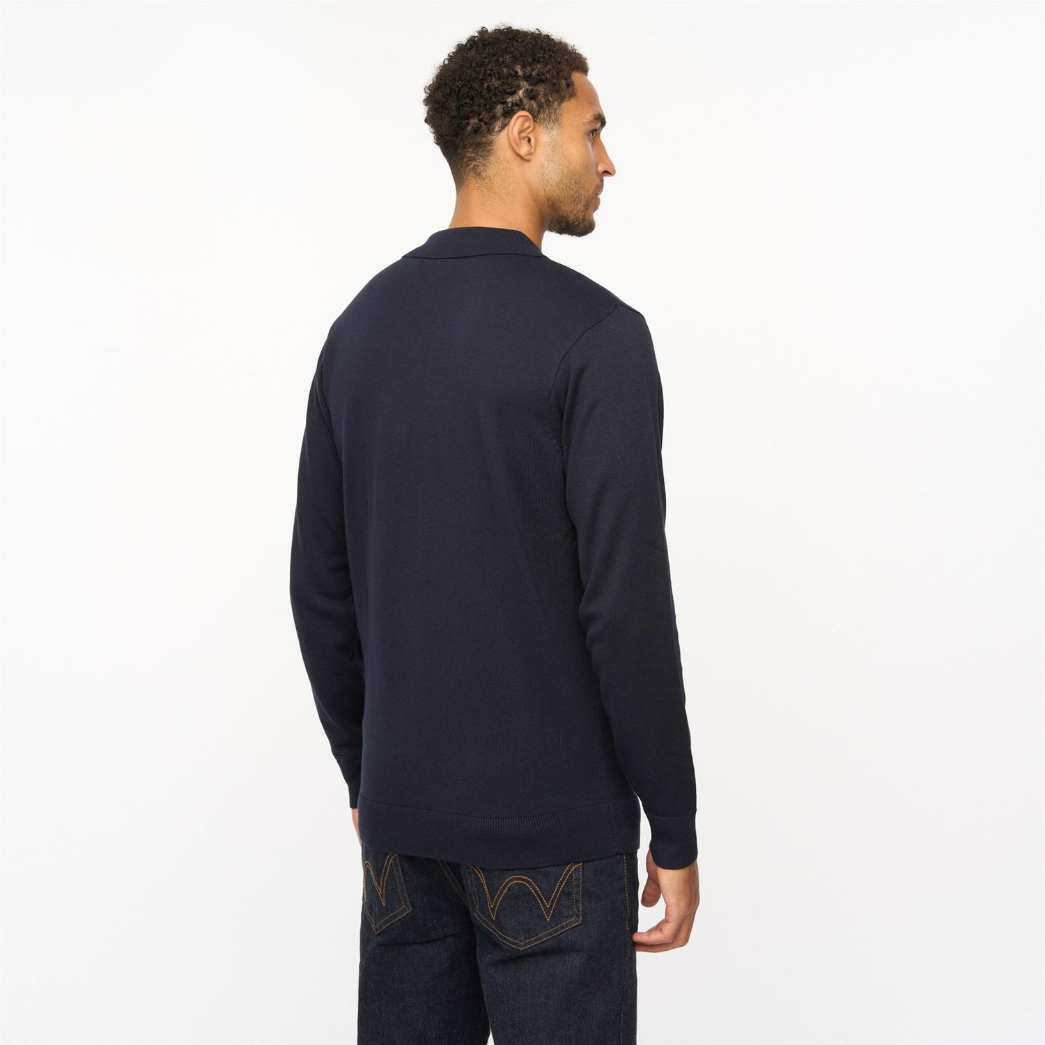 V55GK16 Mens Azima Long Sleeve Plain Knitted Button-Thru Polo Gabicci Vintage - NAVY