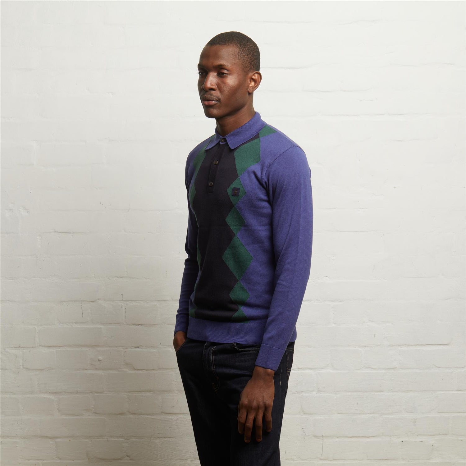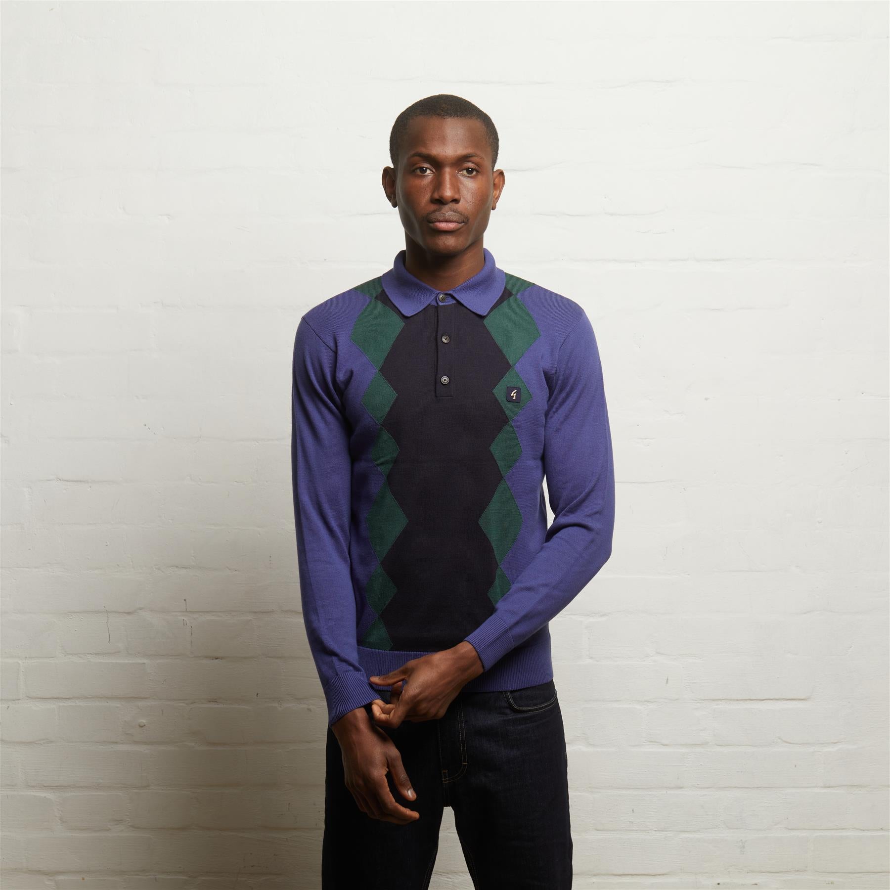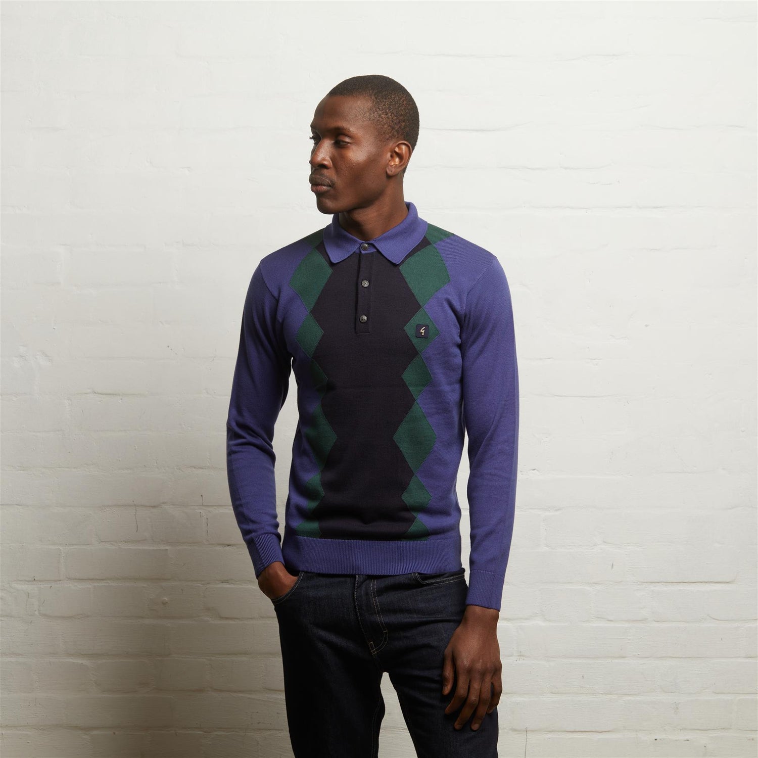 Presenting Mens Bond Long Sleeve Knitted Three Button Polo Gabicci Vintage Atlantic