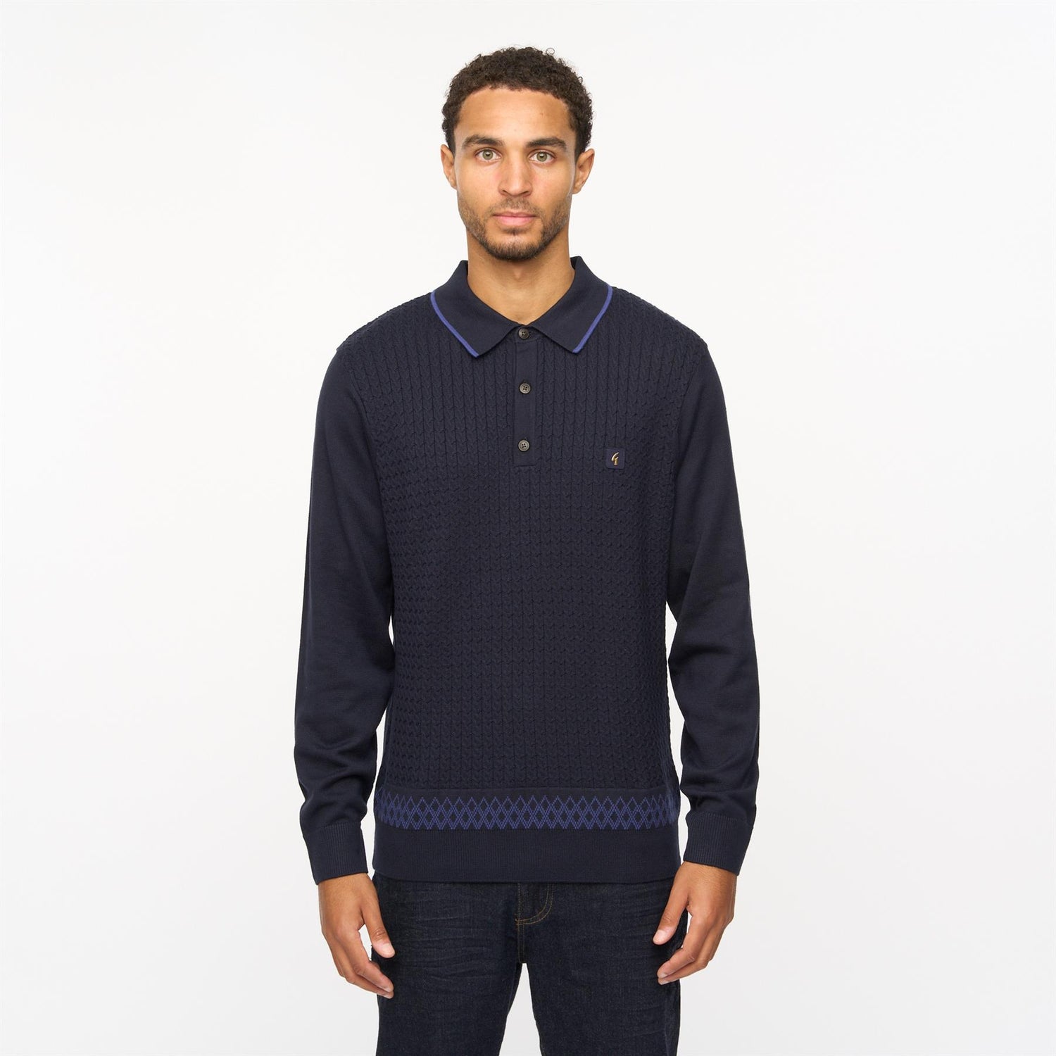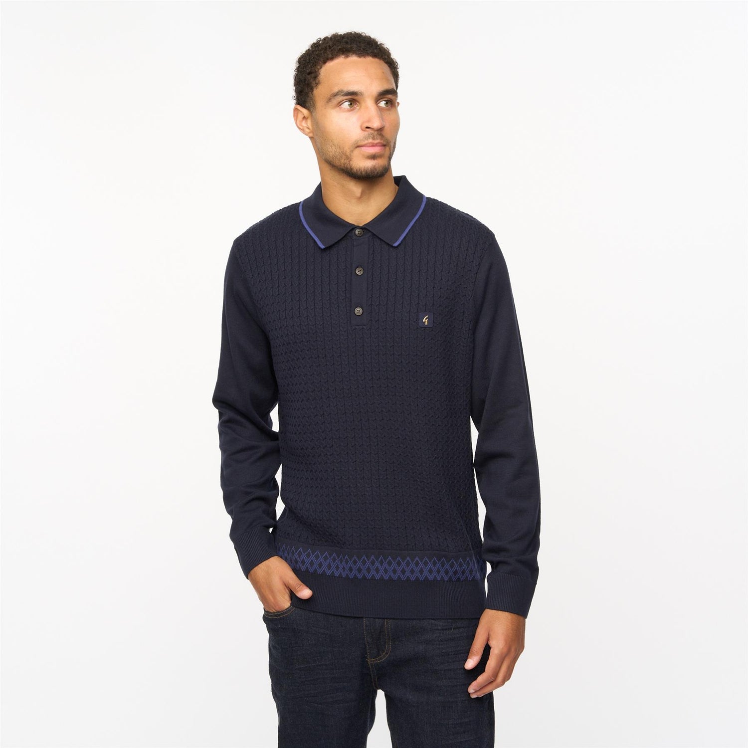Introducing Mens Ely Long Sleeve Knitted Three Button Polo Gabicci Vintage Navy.