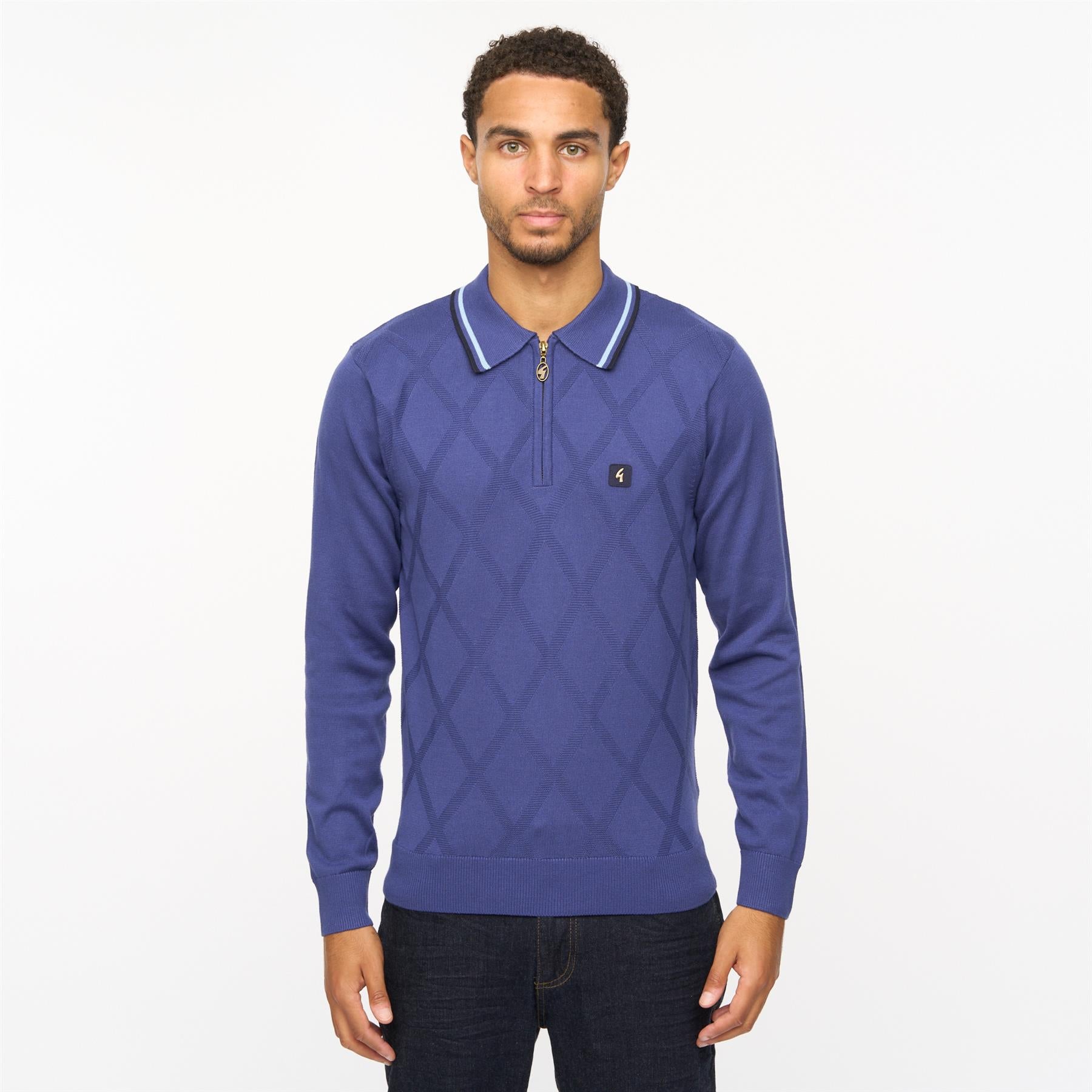 Presenting Mens Moore Long Sleeve Knitted Zip Neck Polo Gabicci Vintage Atlantic.