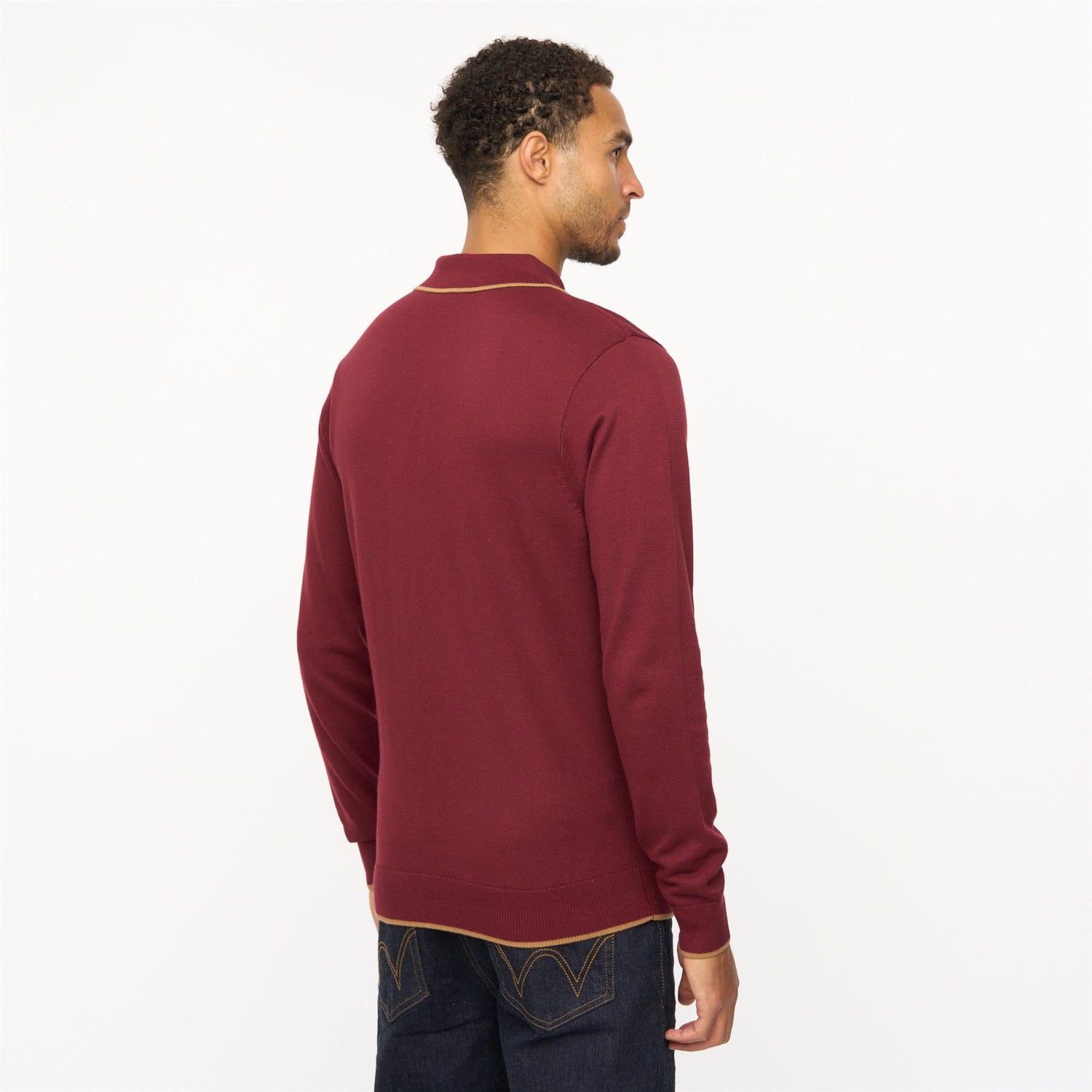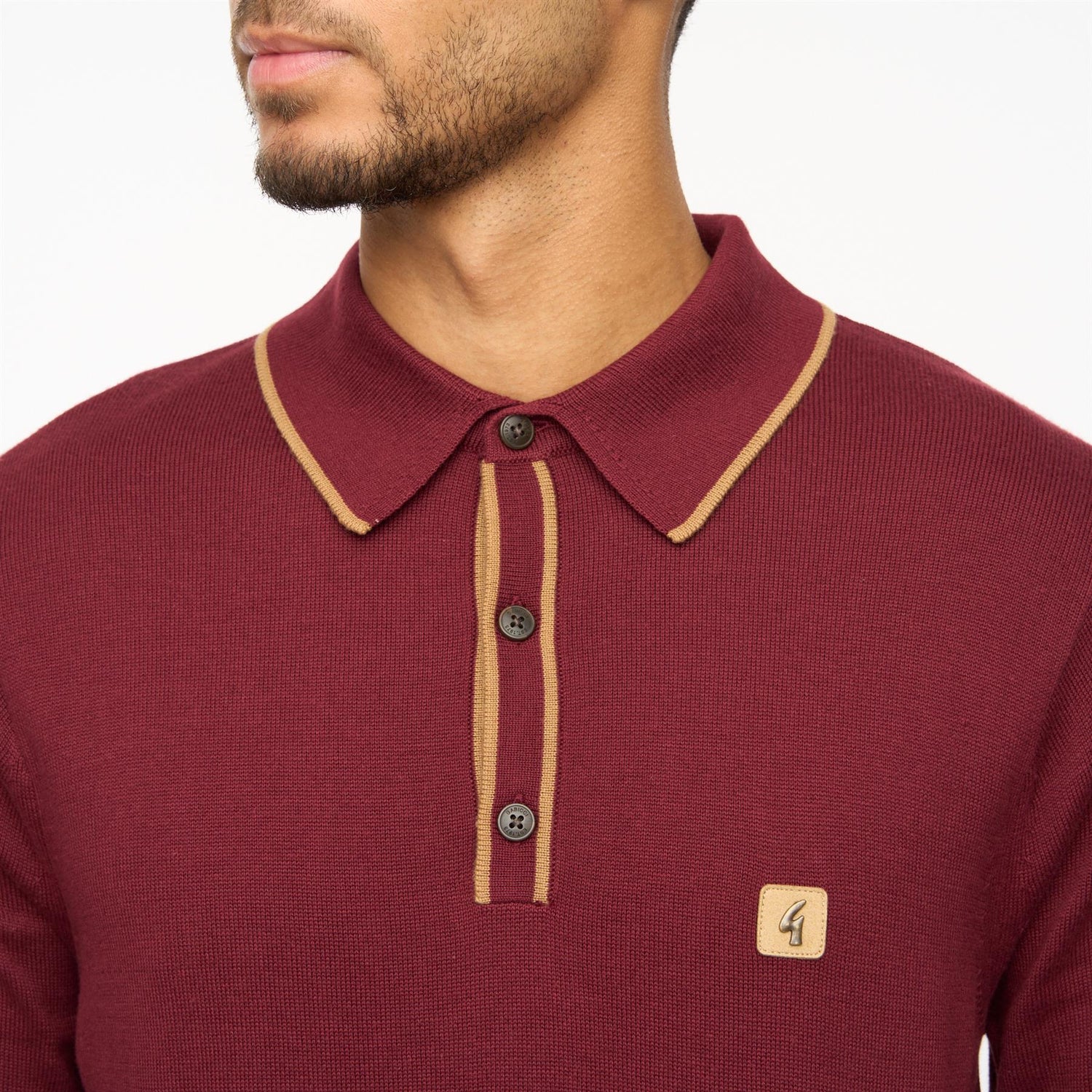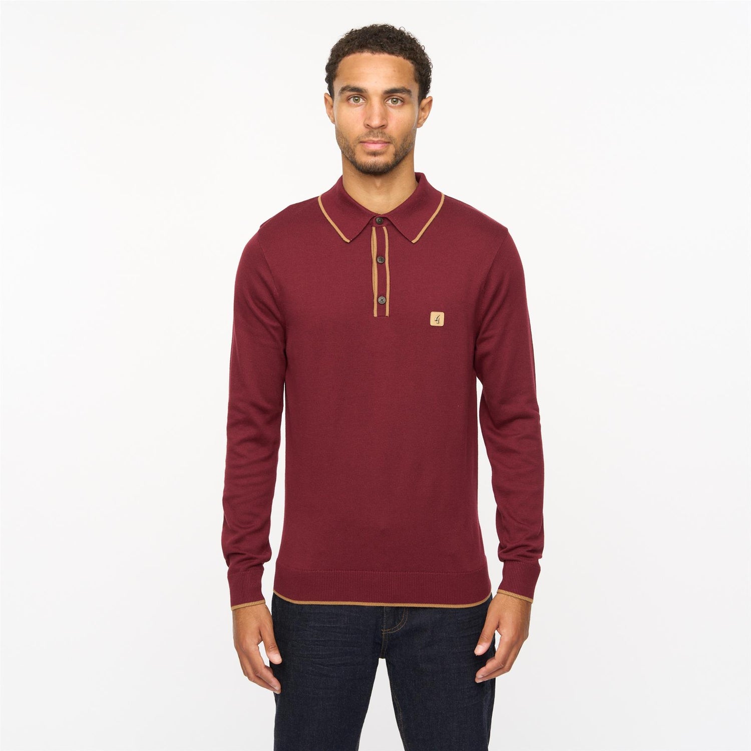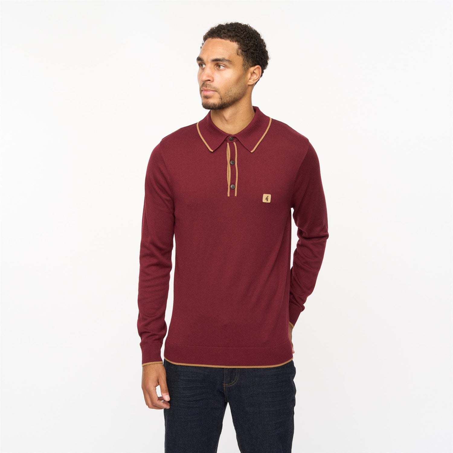 Presenting Mens Lineker Long Sleeve Knitted Three Button Polo Gabicci Vintage Mulberry