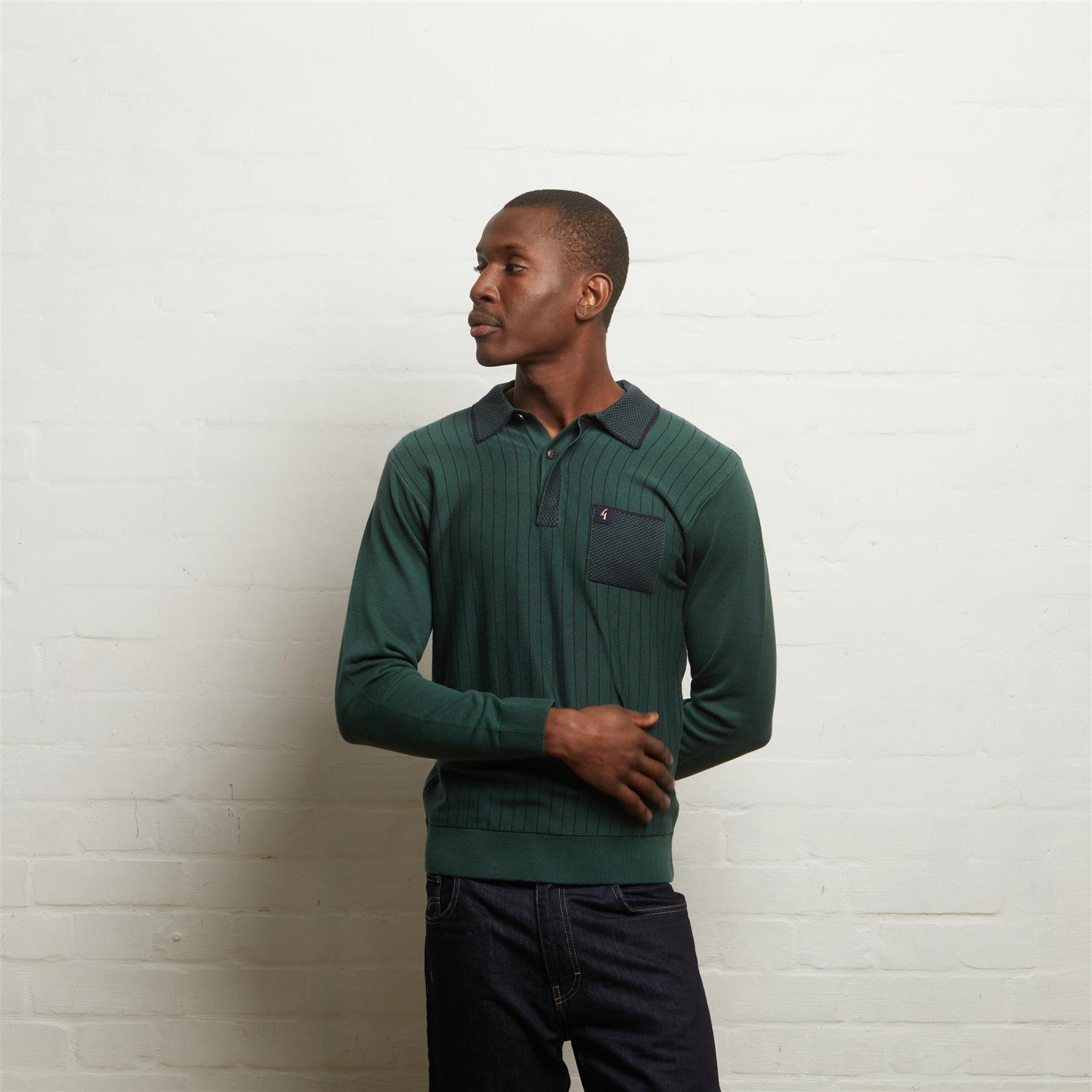 Featuring Mens Hamley Long Sleeve Knitted Three Button Polo Gabicci Vintage Ivy