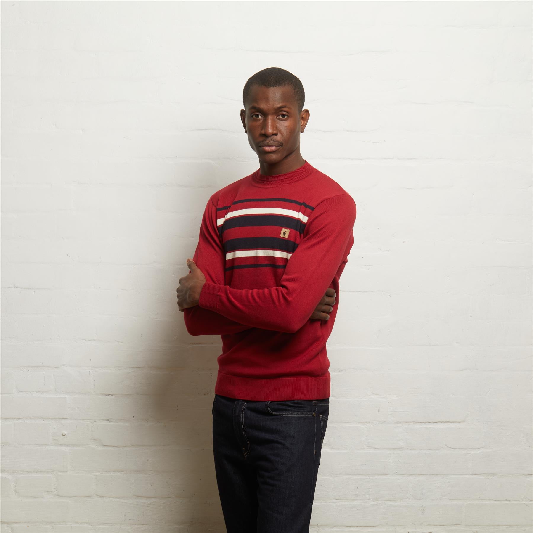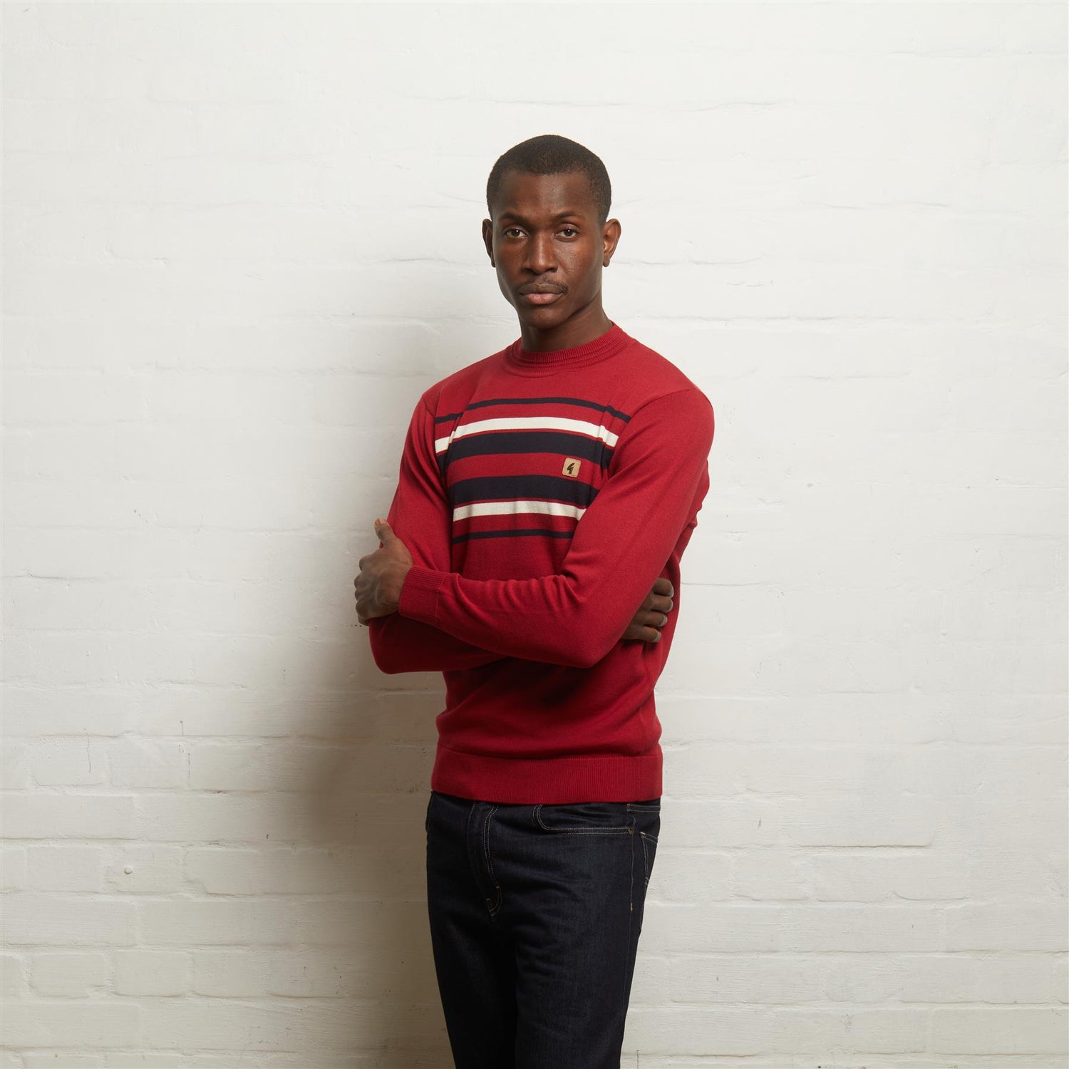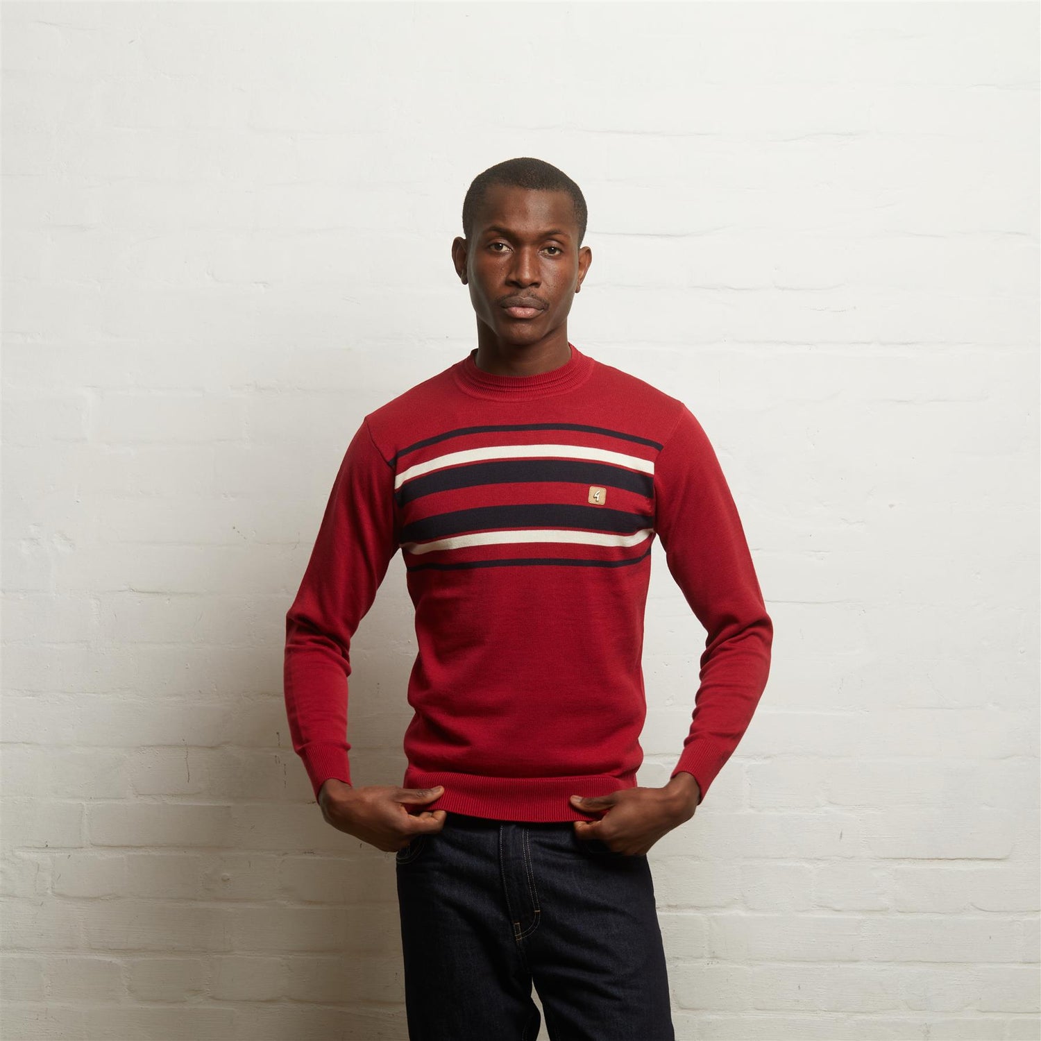Presenting Mens Liam Long Sleeve Knitted Crew Neck Sweater Gabicci Vintage Cherry