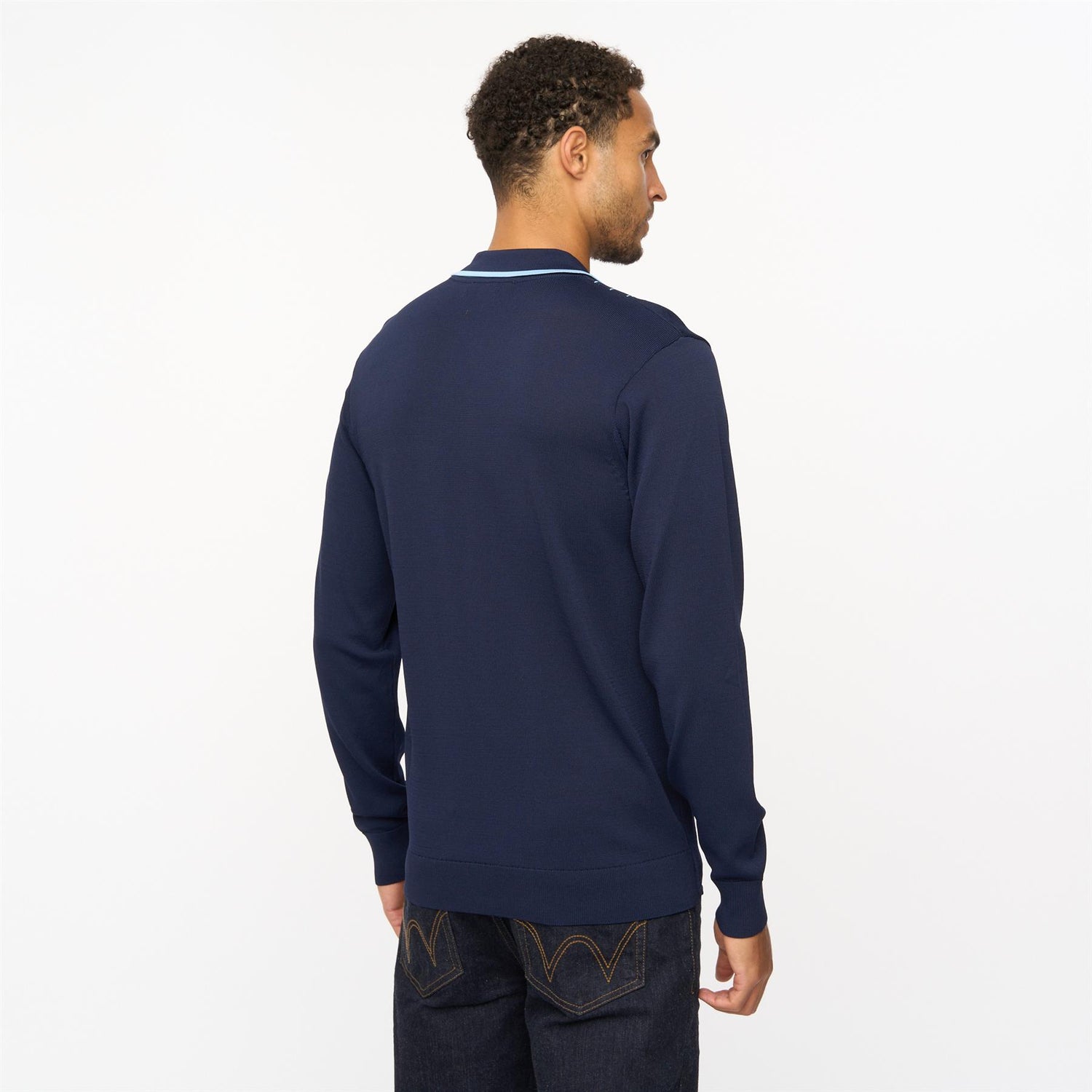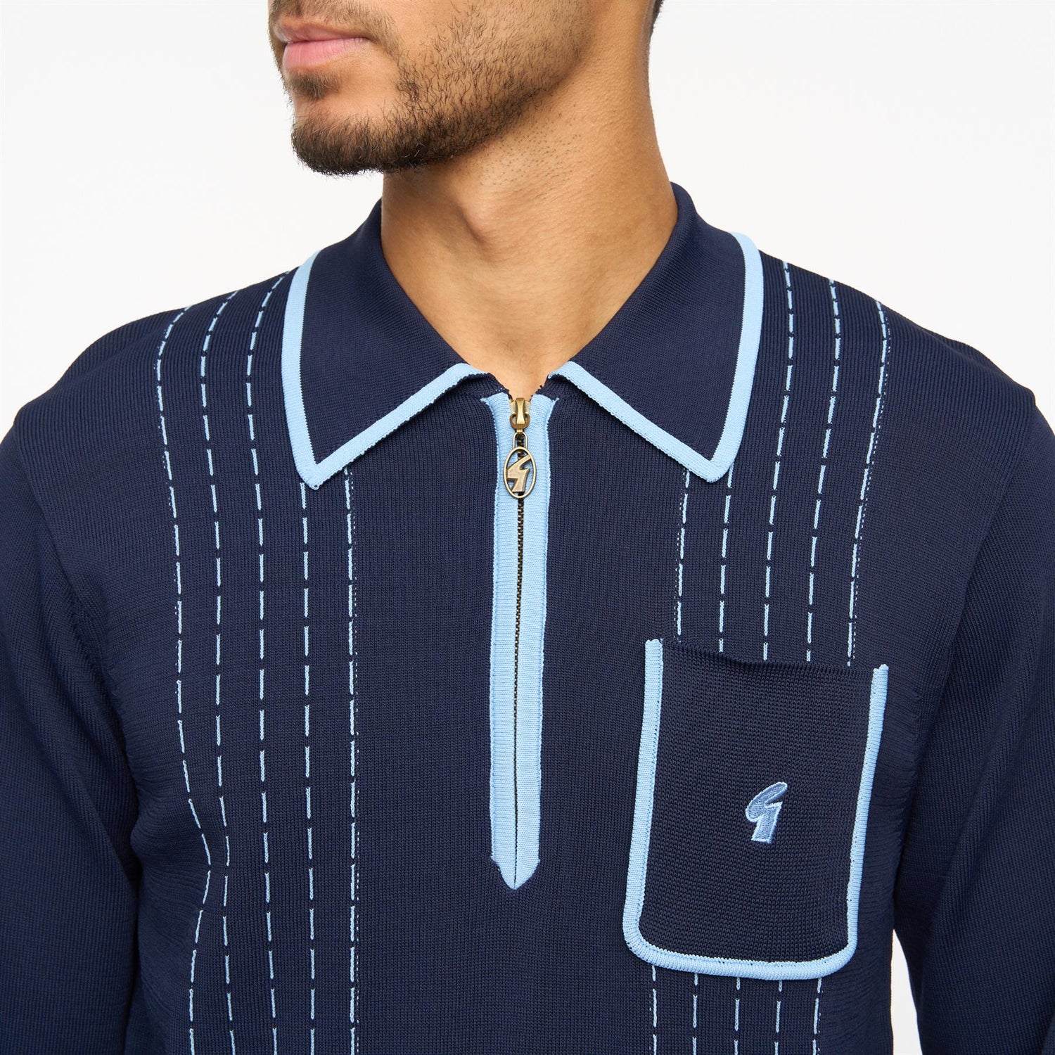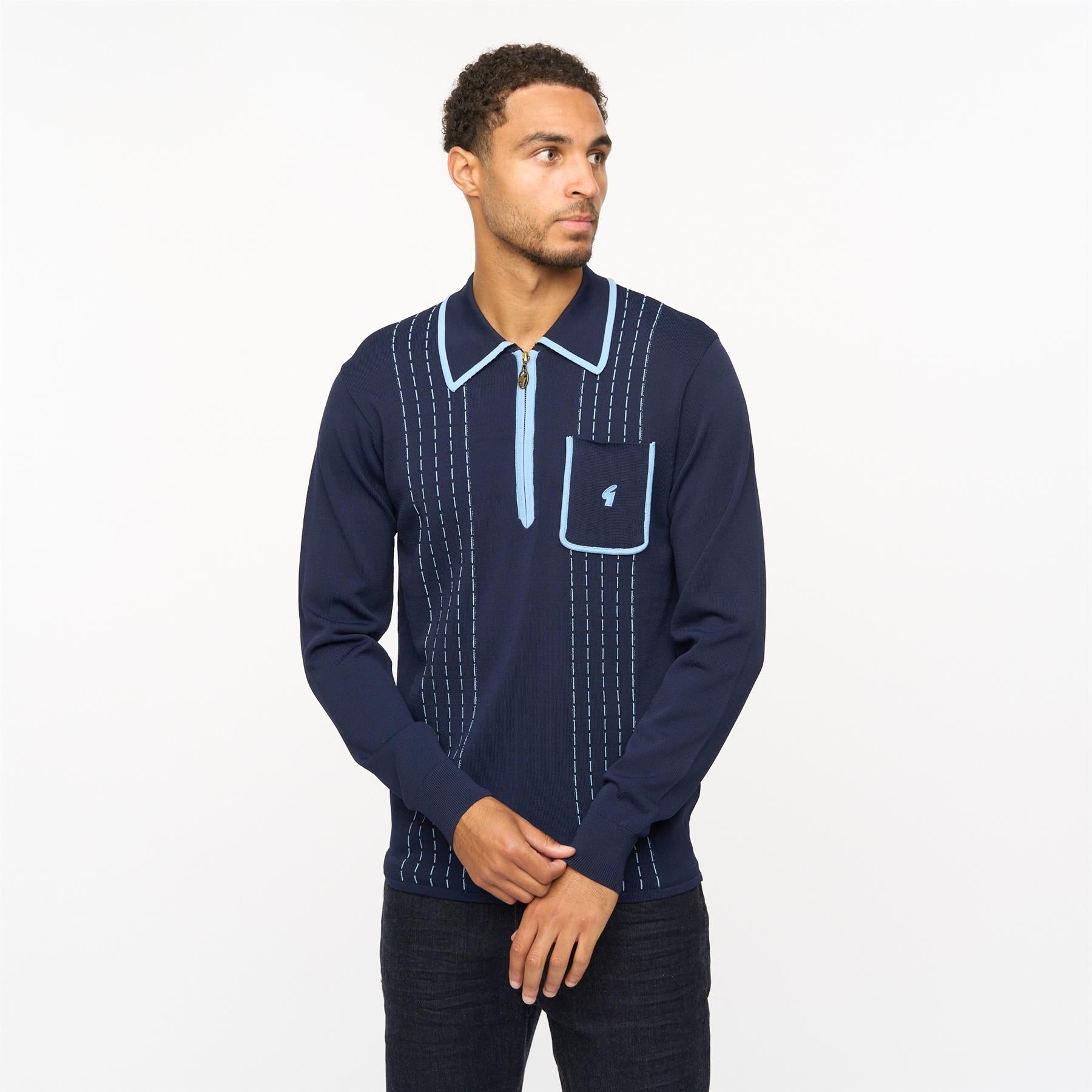 V55GM25 Mens Darron Long Sleeve Archive Knitted Zip Neck Polo Gabicci Vintage - NAVY