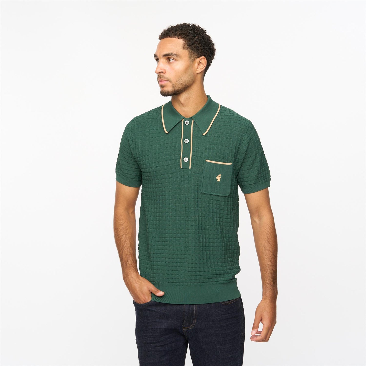 V55GM28 Mens Roy Short Sleeve Archive Knitted Three Button Polo Gabicci Vintage - IVY