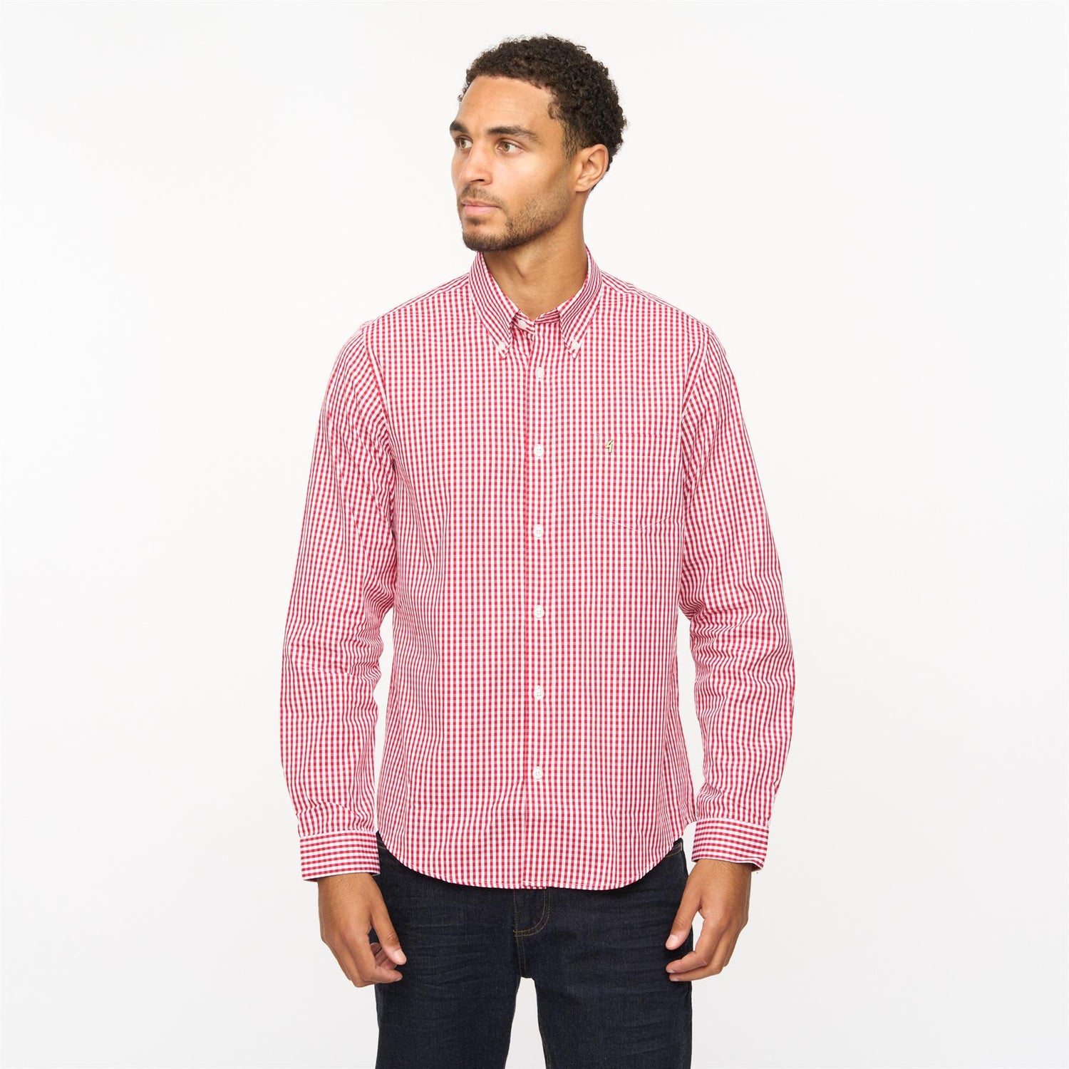 Highlighting Mens Fraser Long Sleeve Woven Check Shirt Gabicci Vintage Cherry