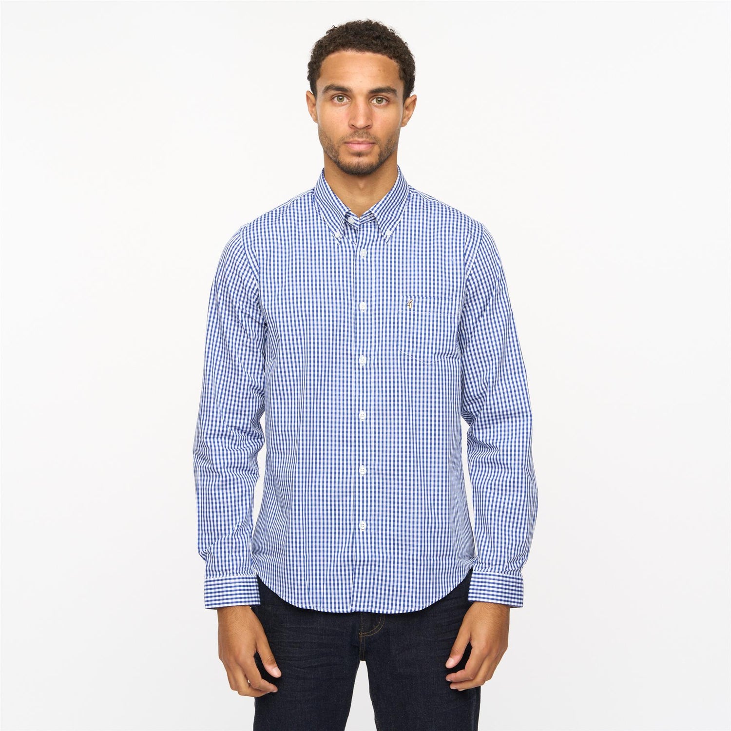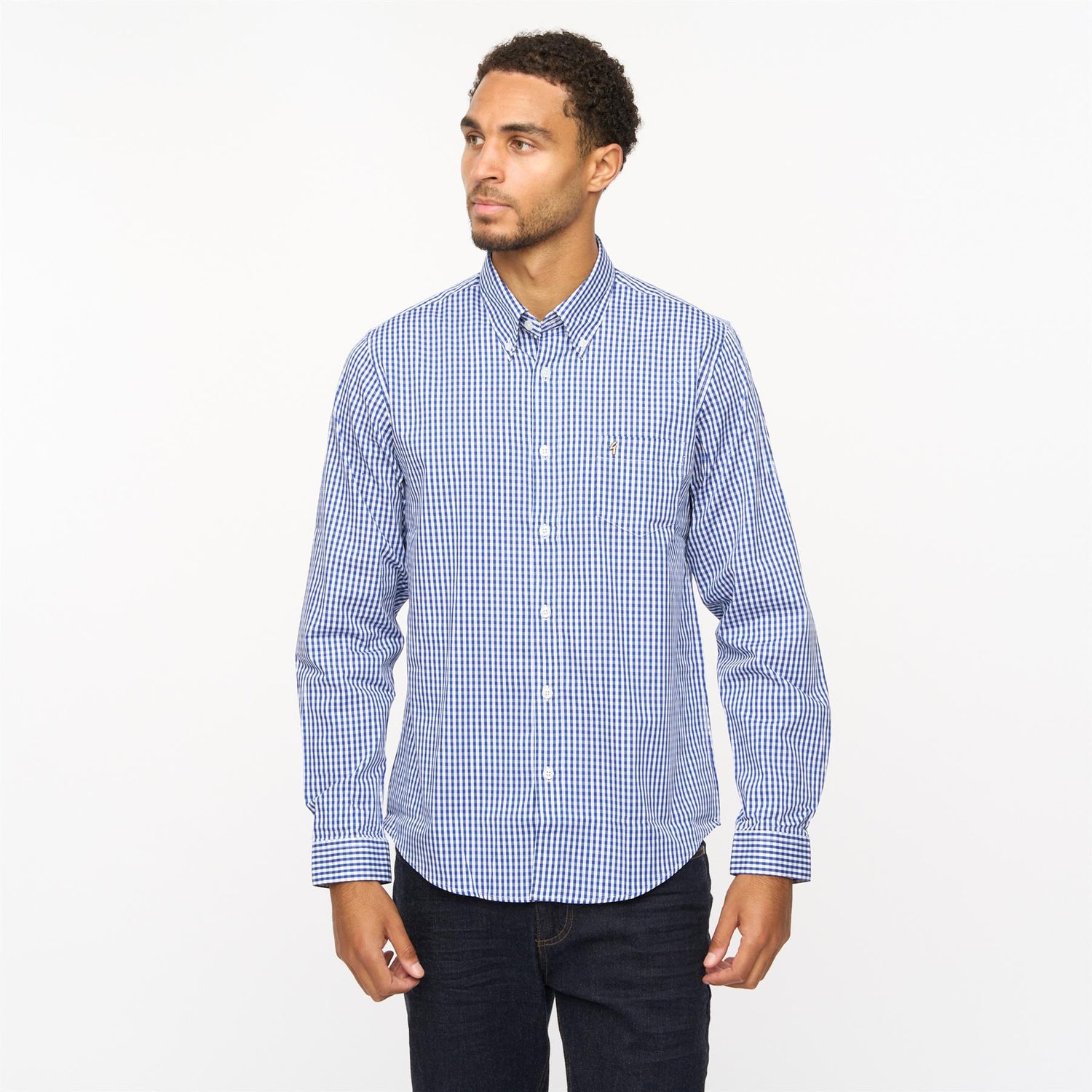 Highlighting Mens Fraser Long Sleeve Woven Check Shirt Gabicci Vintage Cobalt