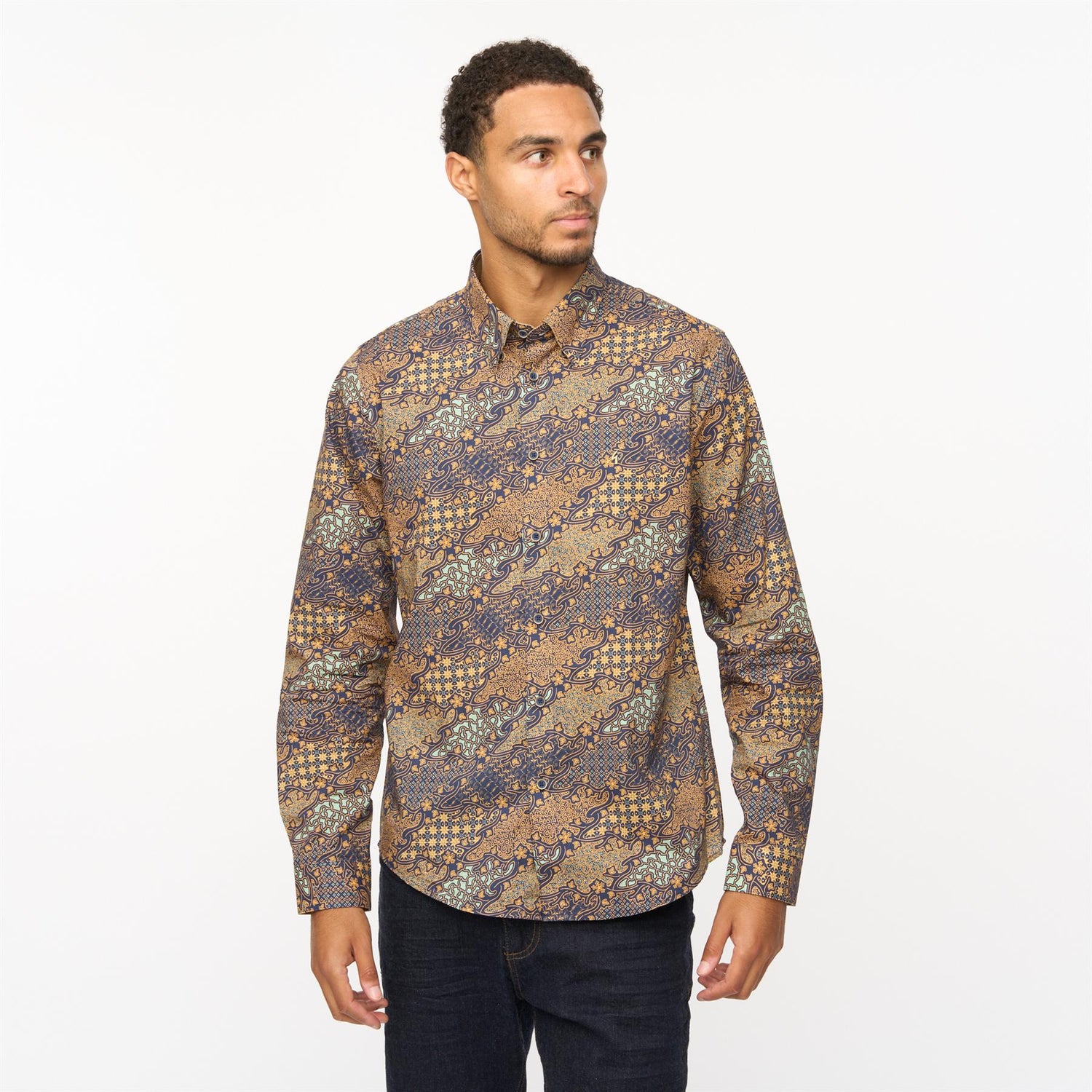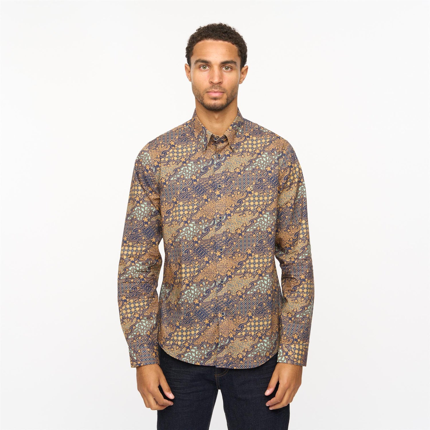 Presenting Mens Oliver Long Sleeve Printed Woven Shirt Gabicci Vintage Navy