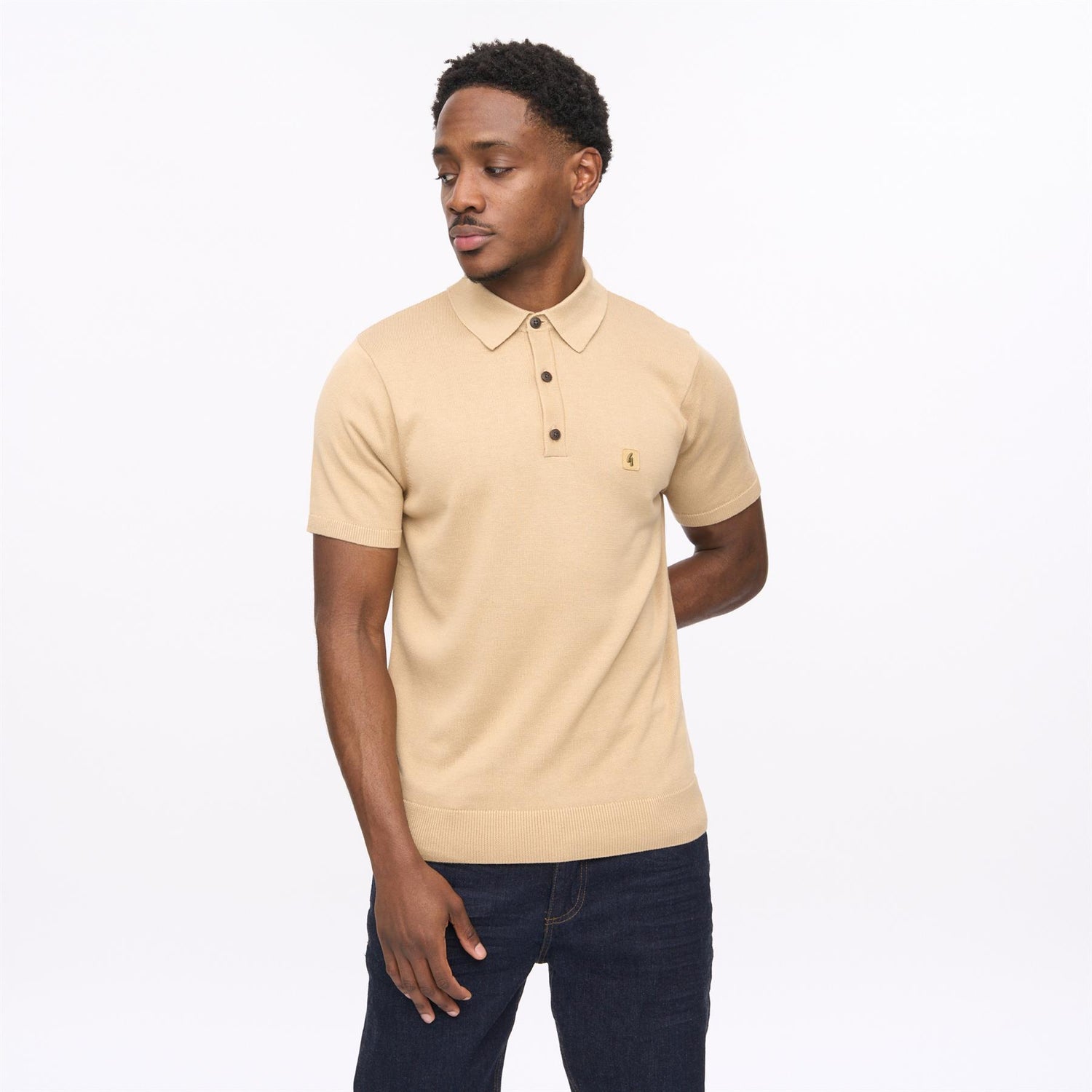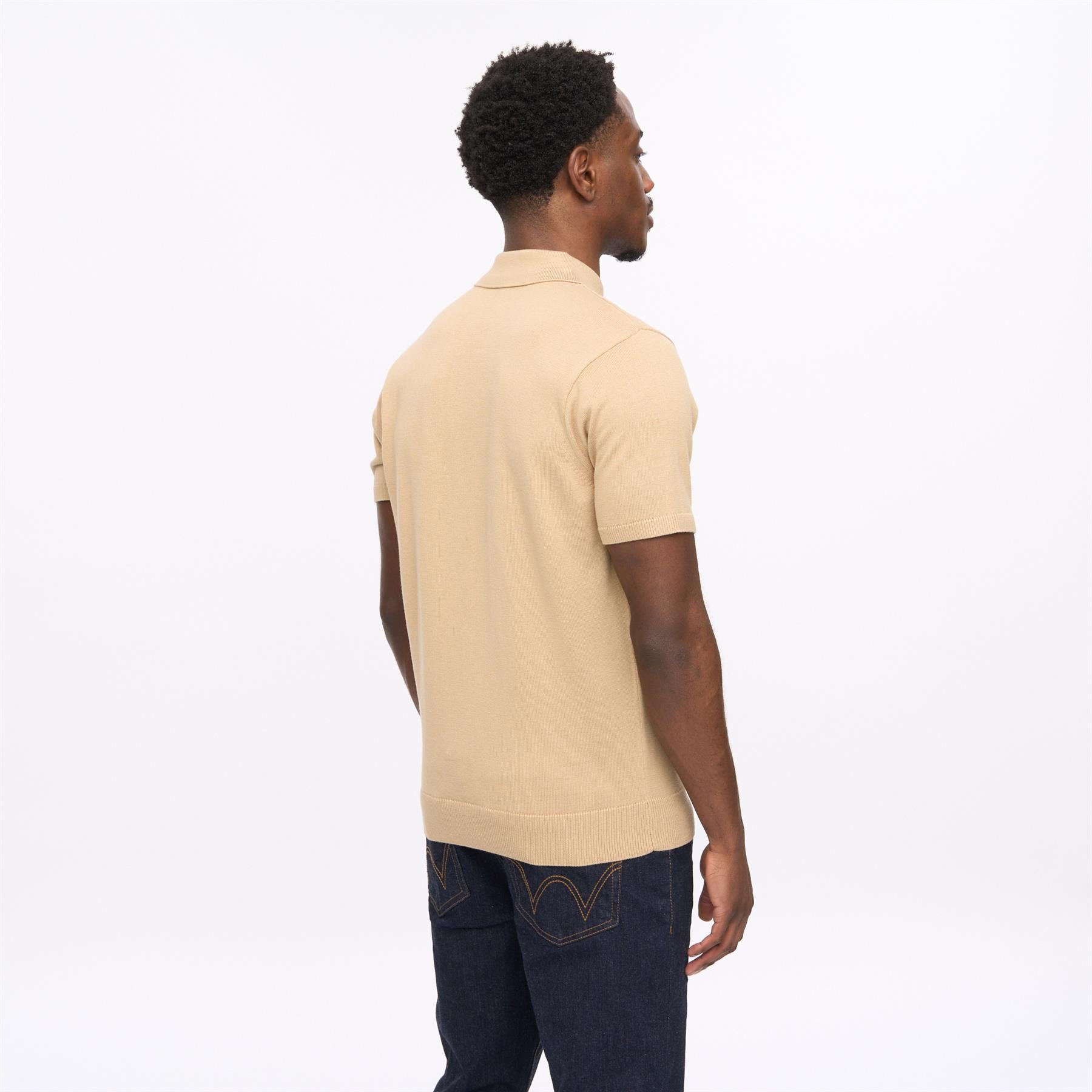 V56GK04 Mens Jackson Short Sleeve Plain Knit Polo Gabicci Vintage - SANDSTONE