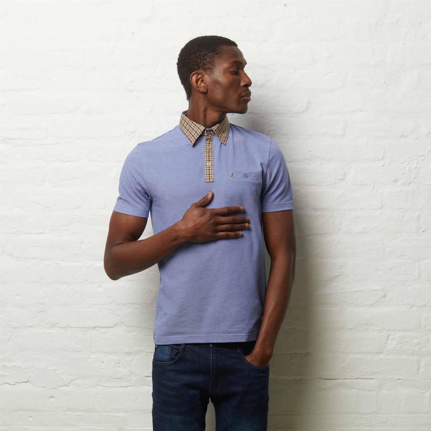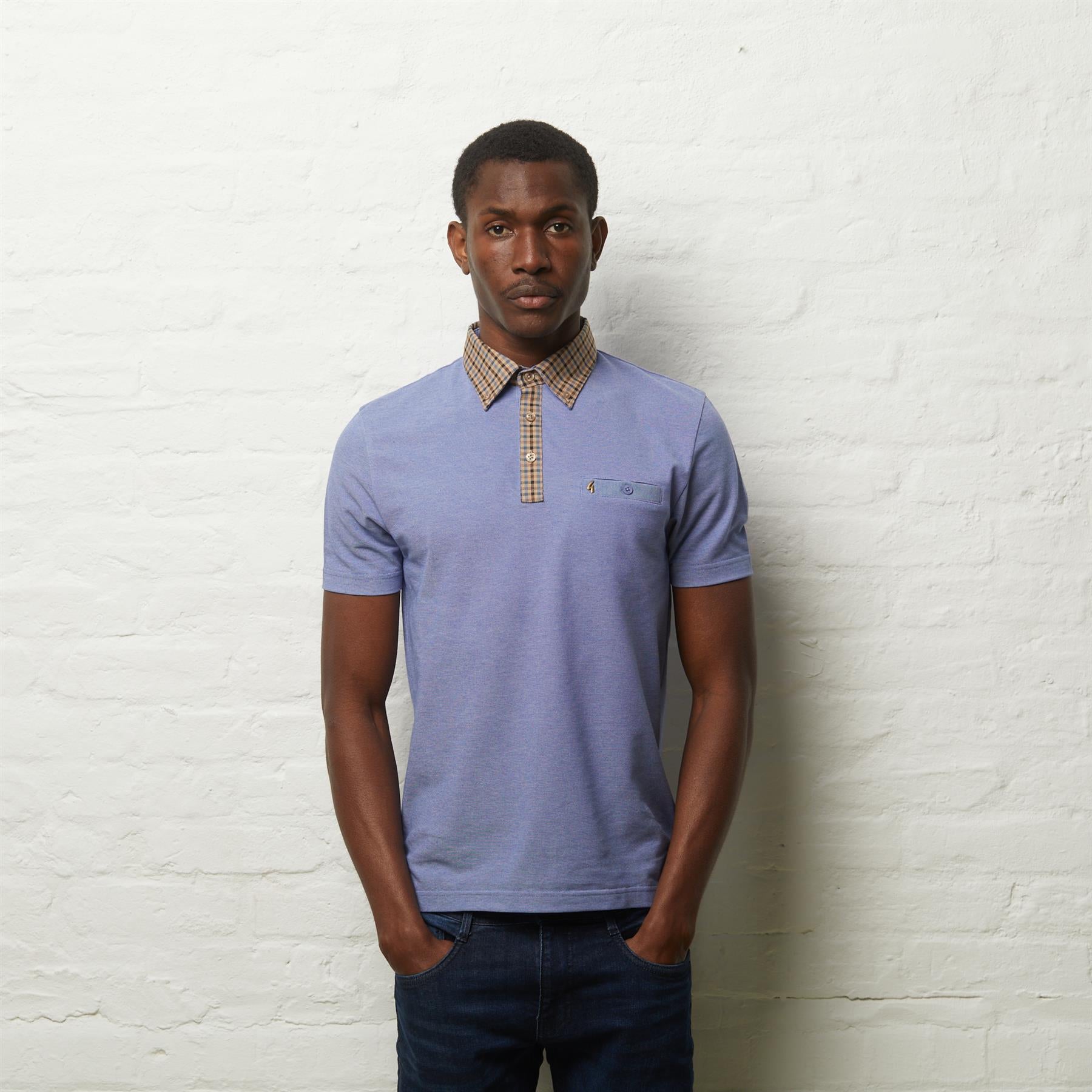 Presenting Mens Laleham Short Sleeve Check Collar Oxford Polo Shirt Gabicci Vintage Sapphire